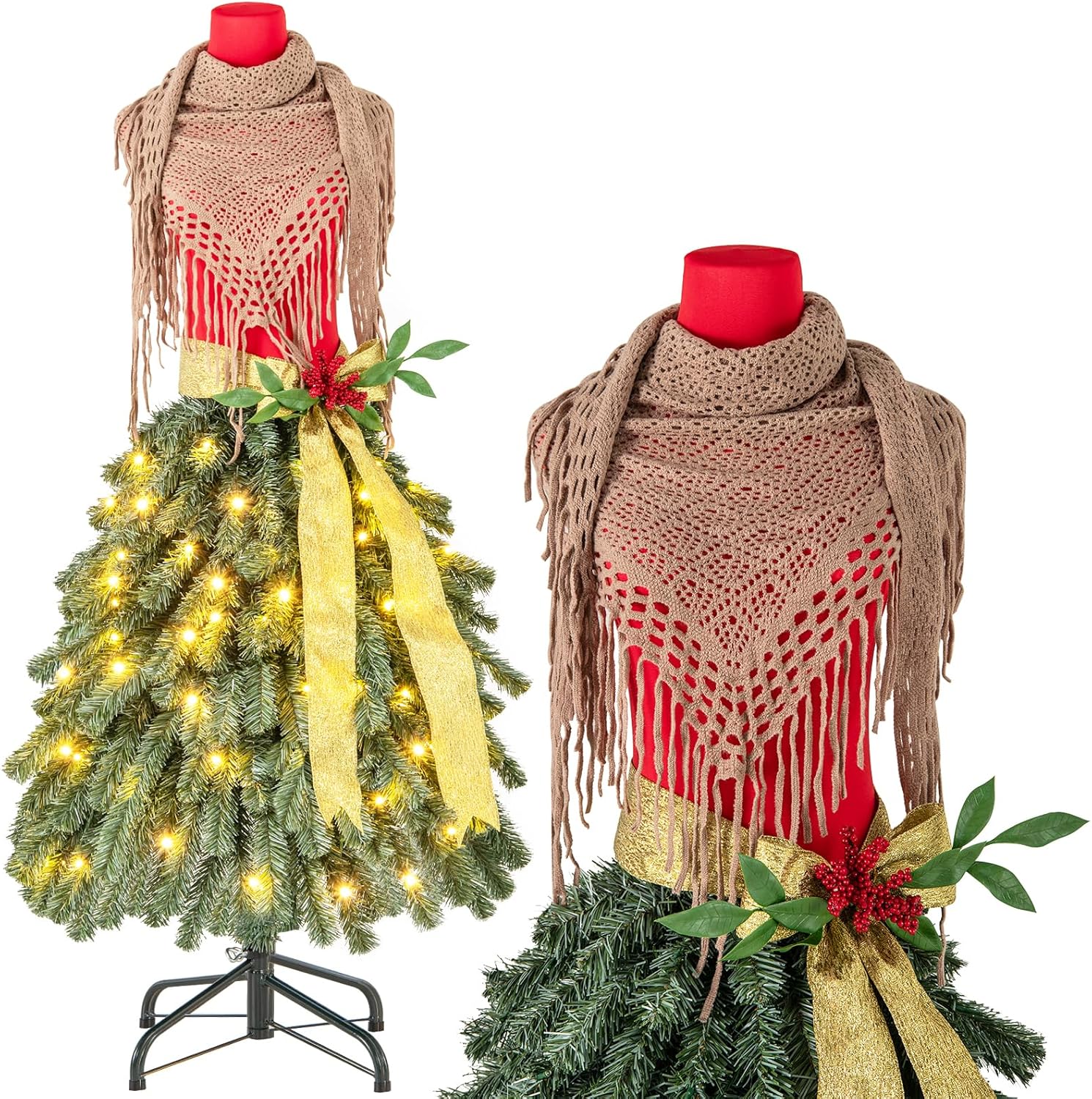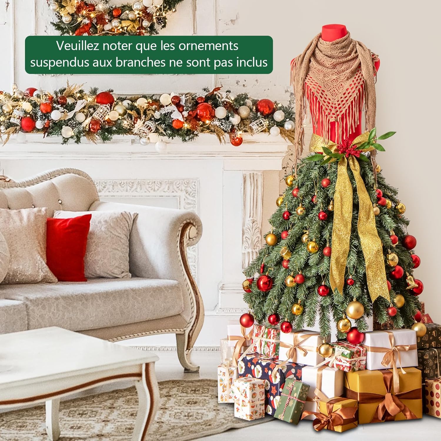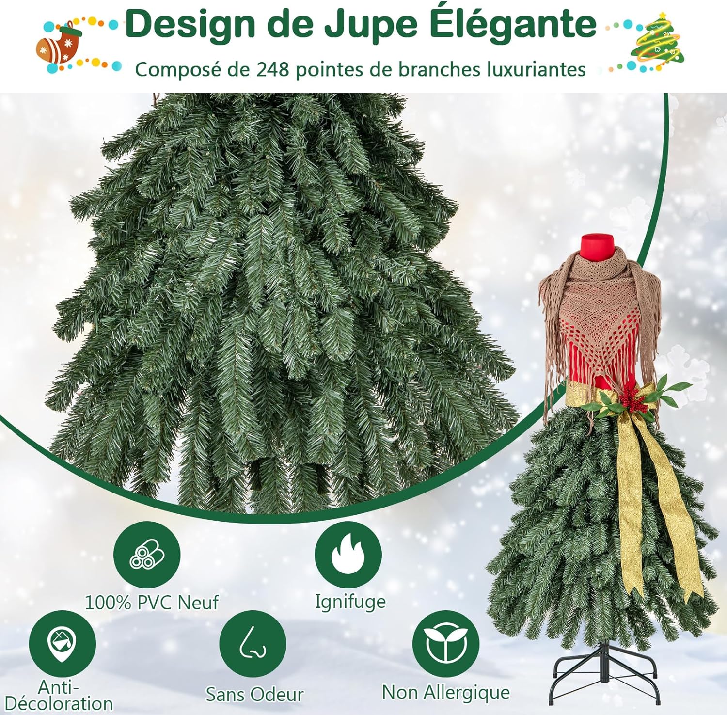 - Conception Elégante — L'arbre mannequin comporte 248 pointes de branches luxuriantes qui sont habilement façonnées en une jupe délicate, imitant une belle tenue de bal qui remplit sans effort votre pièce d'un esprit festif.