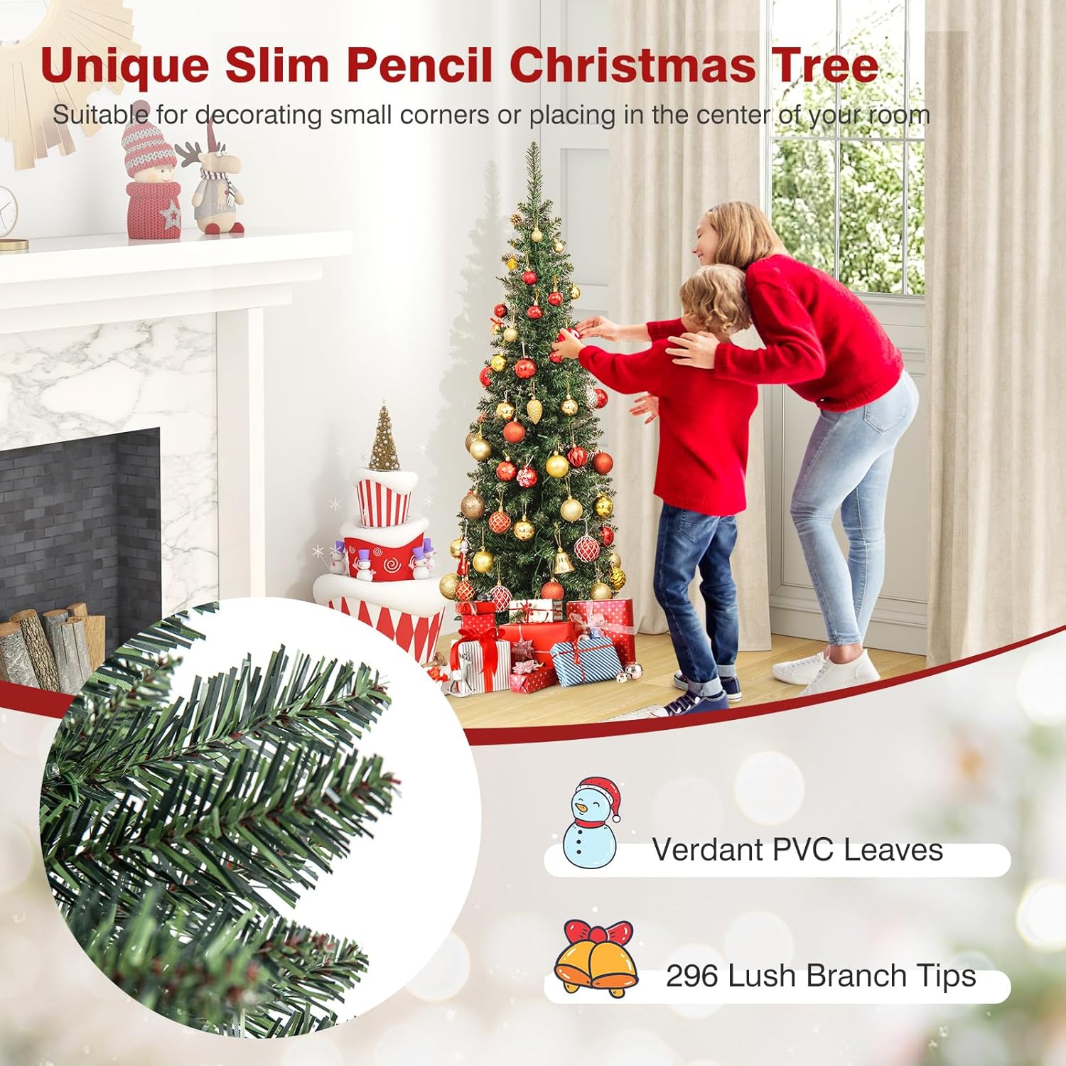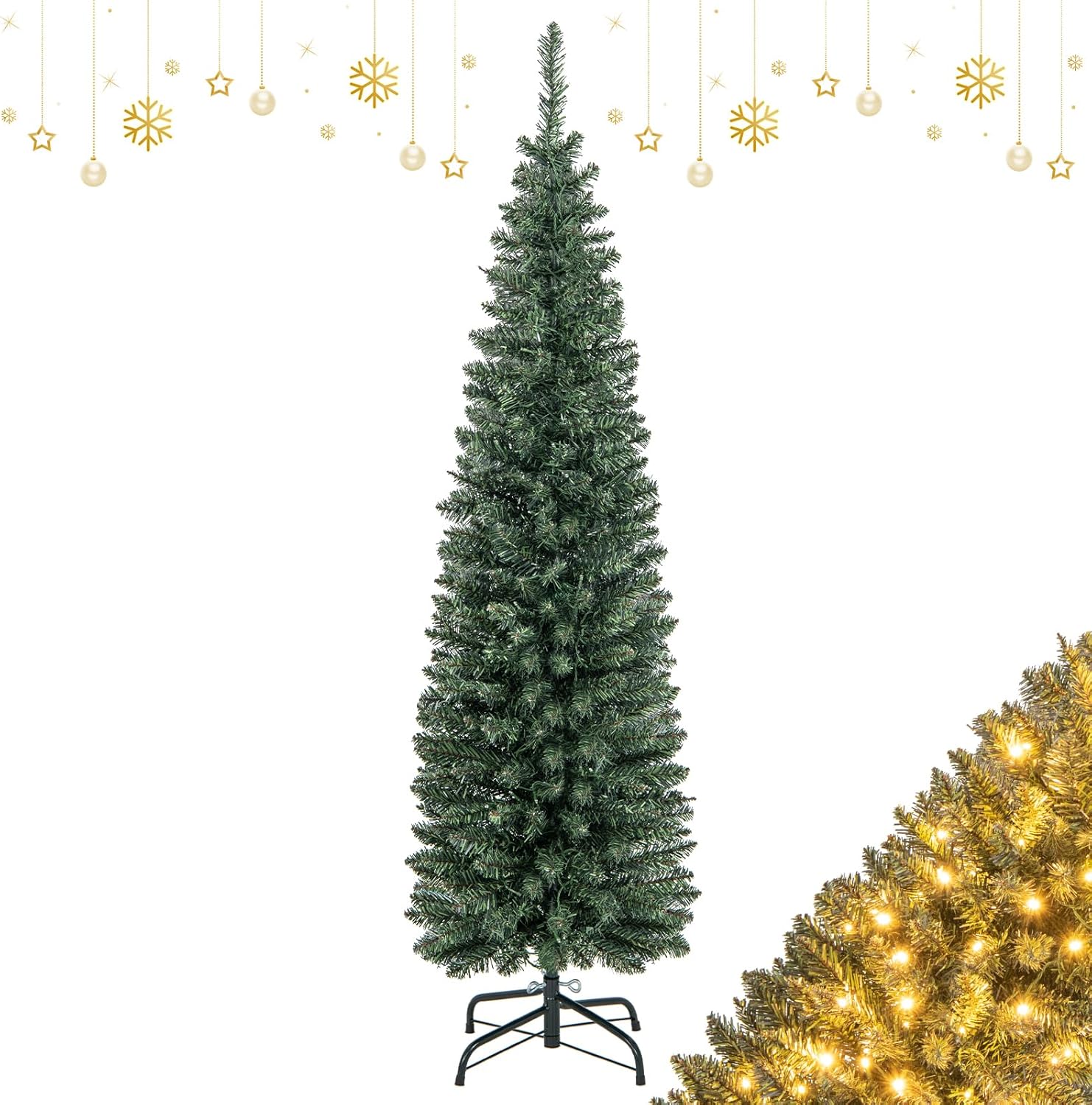 - Forme de crayon mince et apparence vive — Avec sa forme de crayon mince unique, le sapin de Noël convient pour décorer de petits coins ou pour le placer au centre de votre pièce. En outre, il comporte 296/390 pointes de branches luxuriantes et des feuilles verdoyantes en PVC, offrant une apparence réaliste et complète.