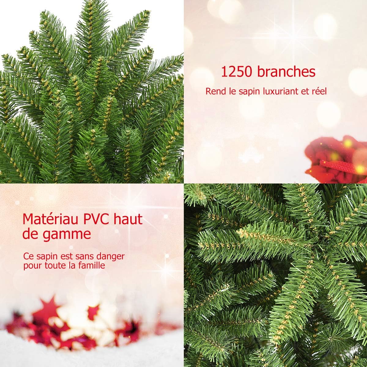- Matériau sûr et apparence réaliste: Fabriqué en PVC écologique, notre sapin de Noël est non seulement non toxique et insipide, mais aussi ignifuge et durable. Les branches luxuriantes et un savoir-faire exquis rendent notre arbre de Noël plus réaliste et apportent un bon effet visuel.