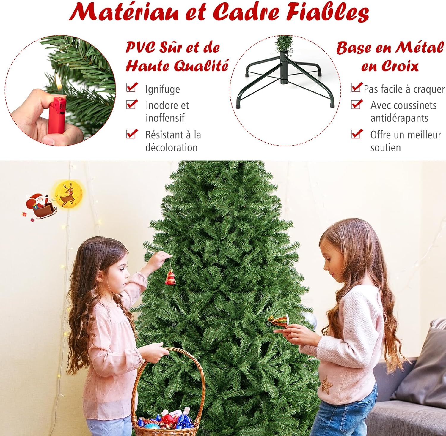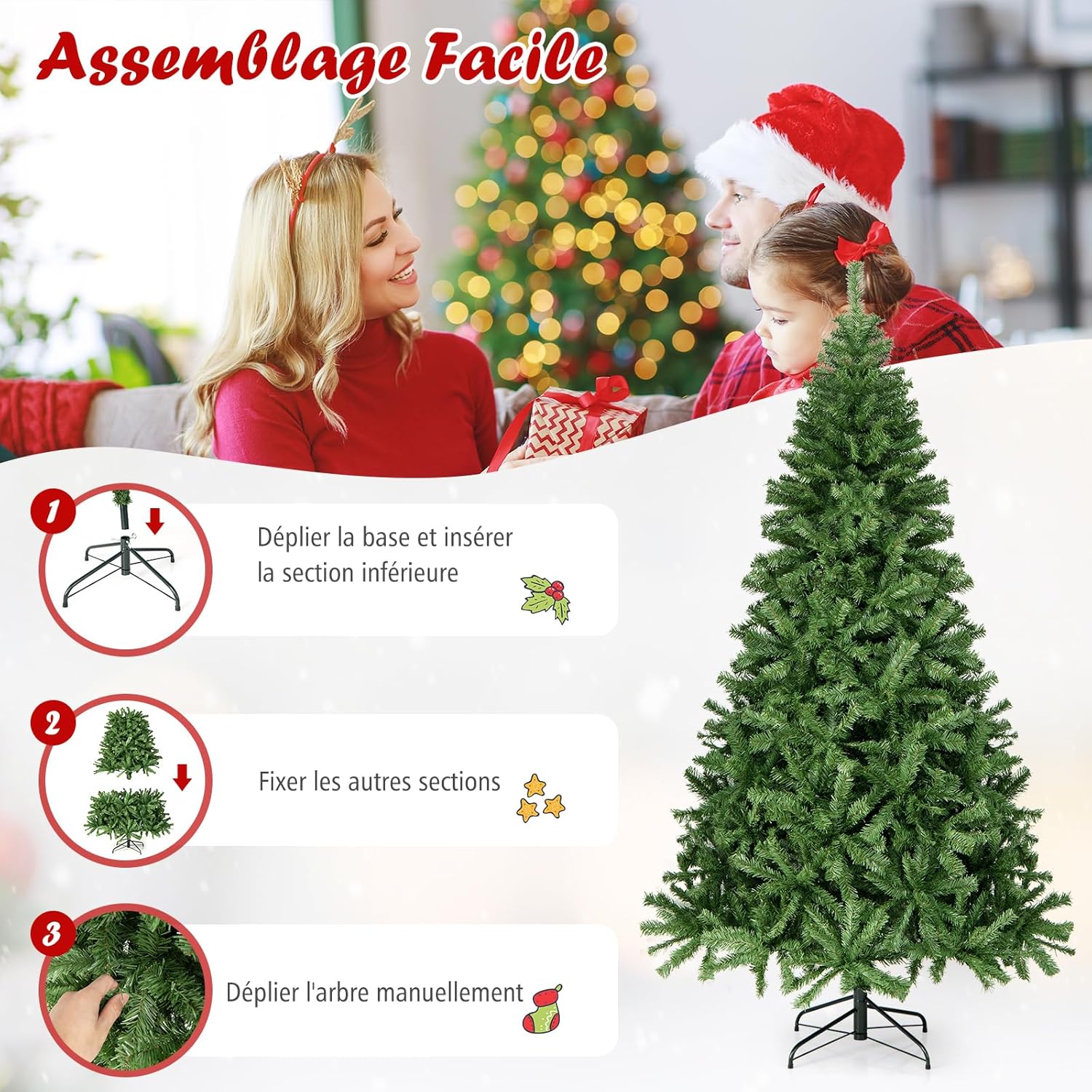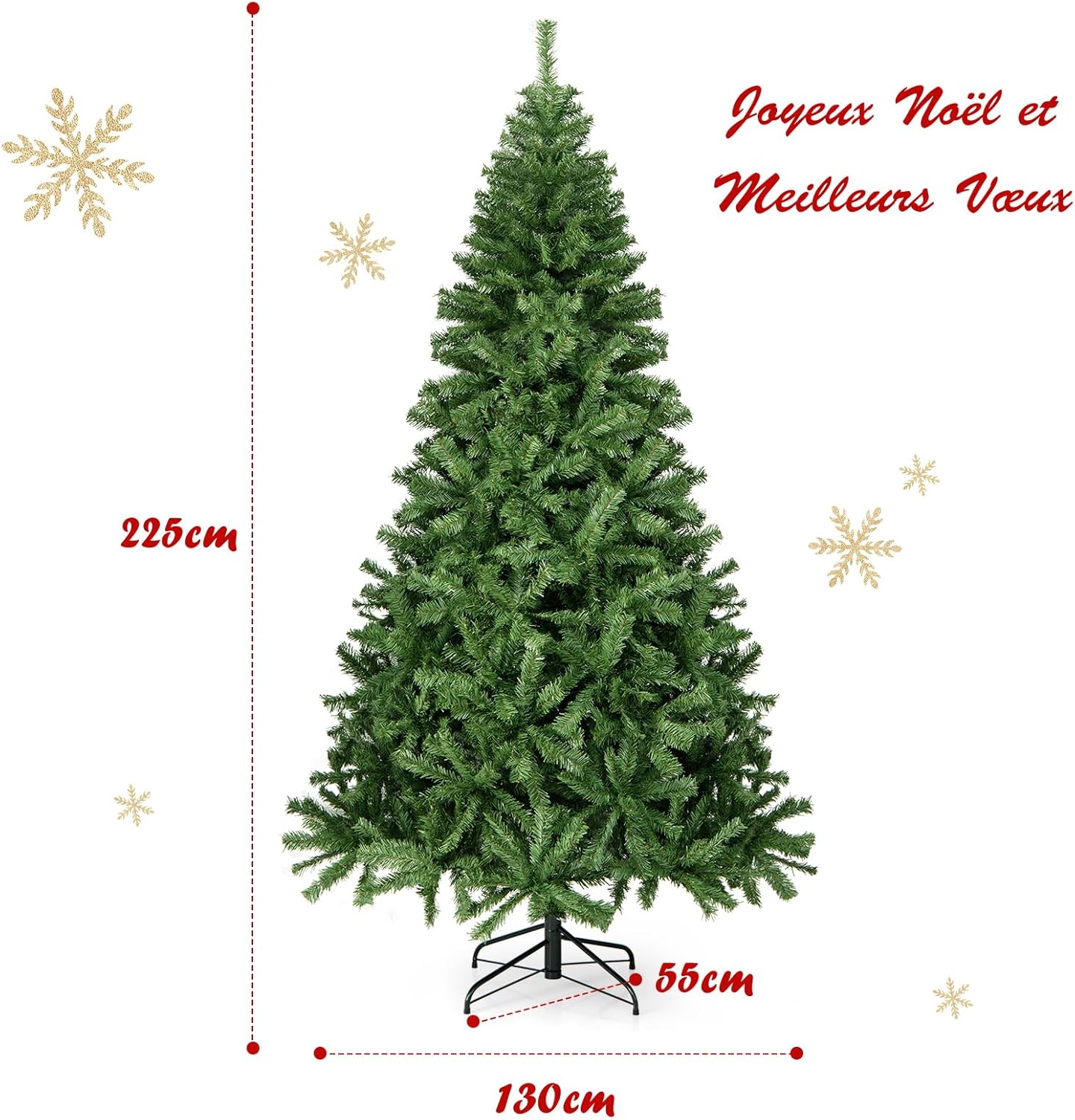 | Libellé | Sapin de noël artificiel 225cm, 1346 branches en pvc ouverture automatique, arbre de noël avec pied vert |