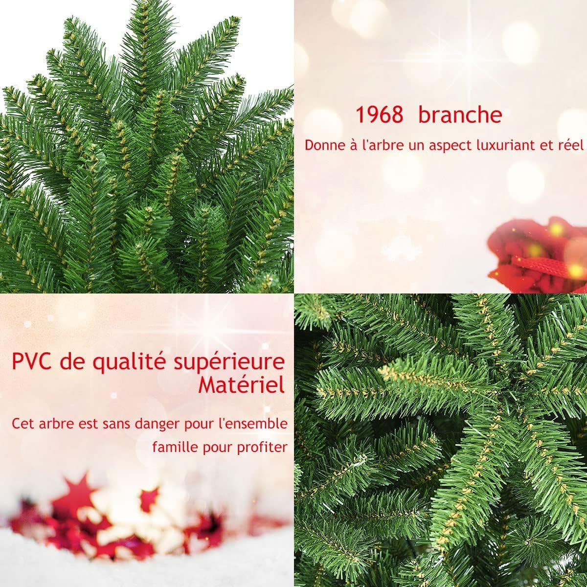 - Matériau sûr et apparence réaliste : Fabriqué en PVC écologique, notre sapin de Noël est non seulement non toxique et insipide, mais aussi ignifuge et durable. Les branches luxuriantes et un savoir-faire exquis rendent notre arbre de Noël plus réaliste et apportent un bon effet visuel.