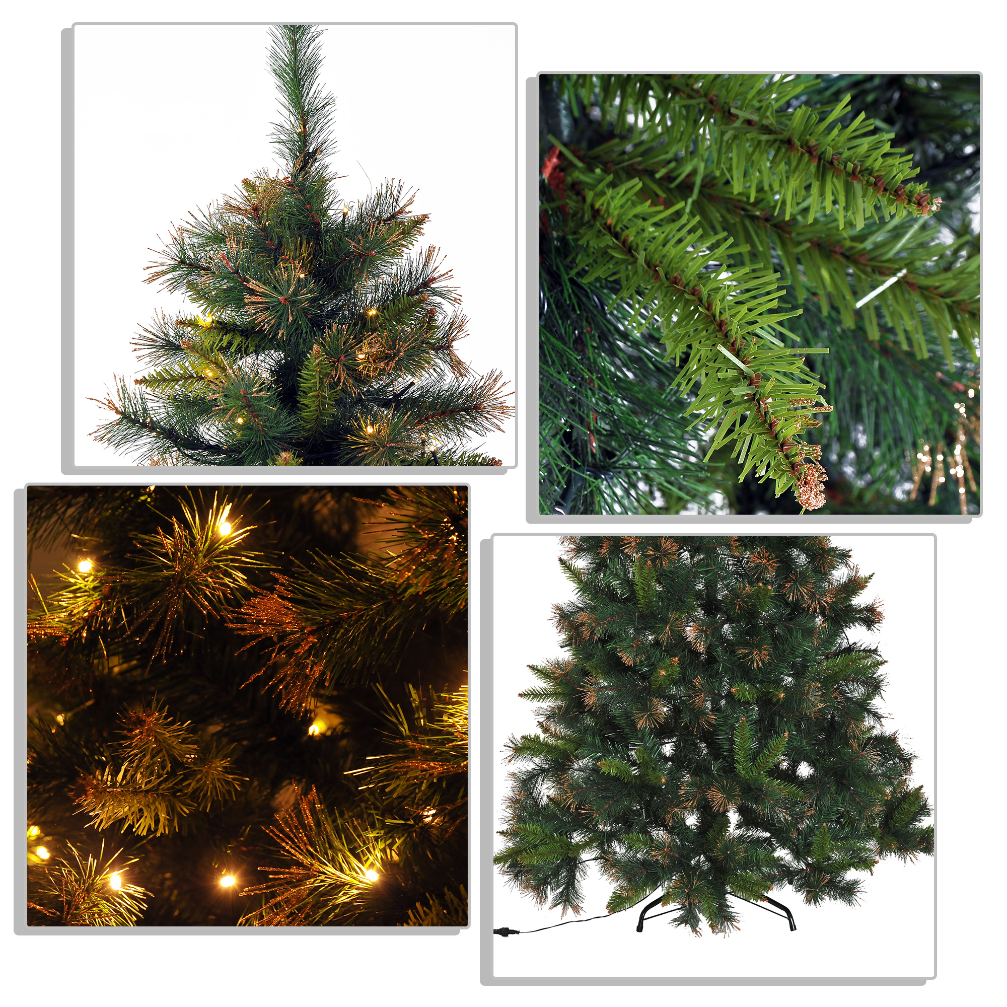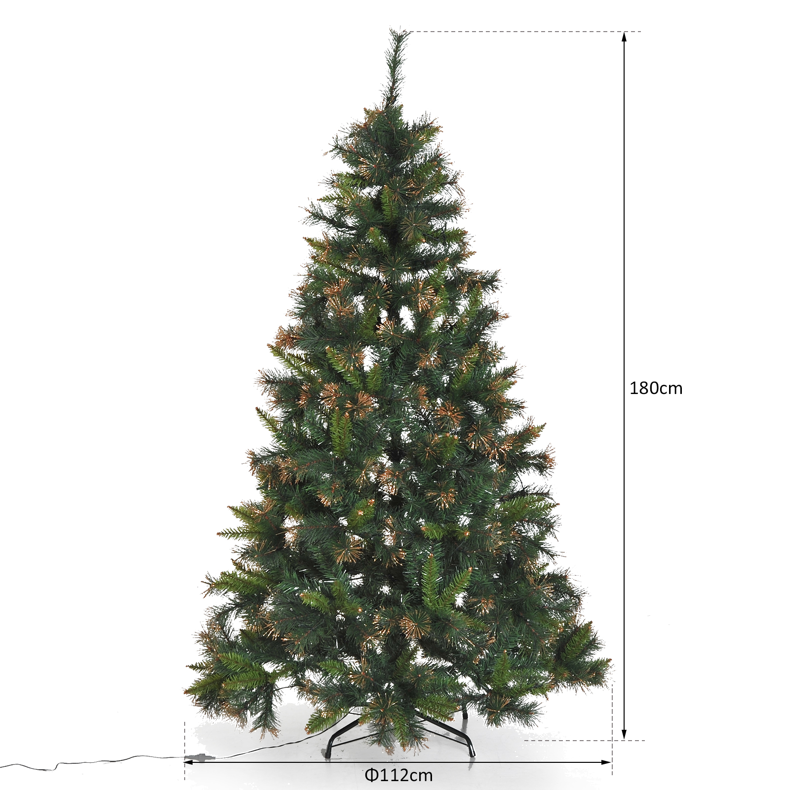 | Libellé | Sapin de Noël artificiel lumineux 200 LED blanc chaud diam. 112 x 180H cm 616 branches épines imitation Nordmann grand réalisme vert et brun |