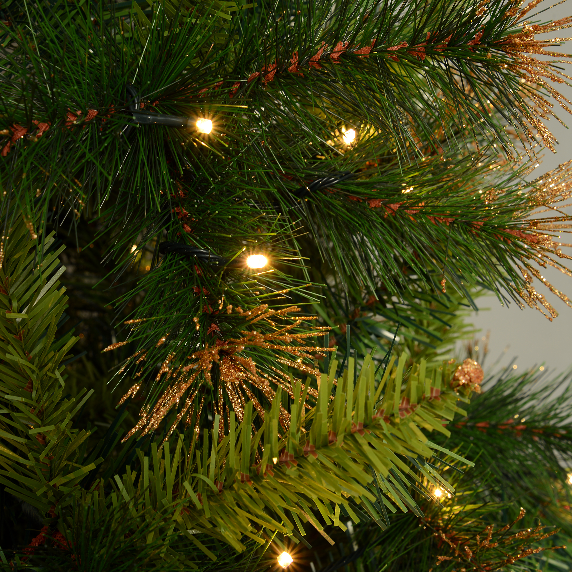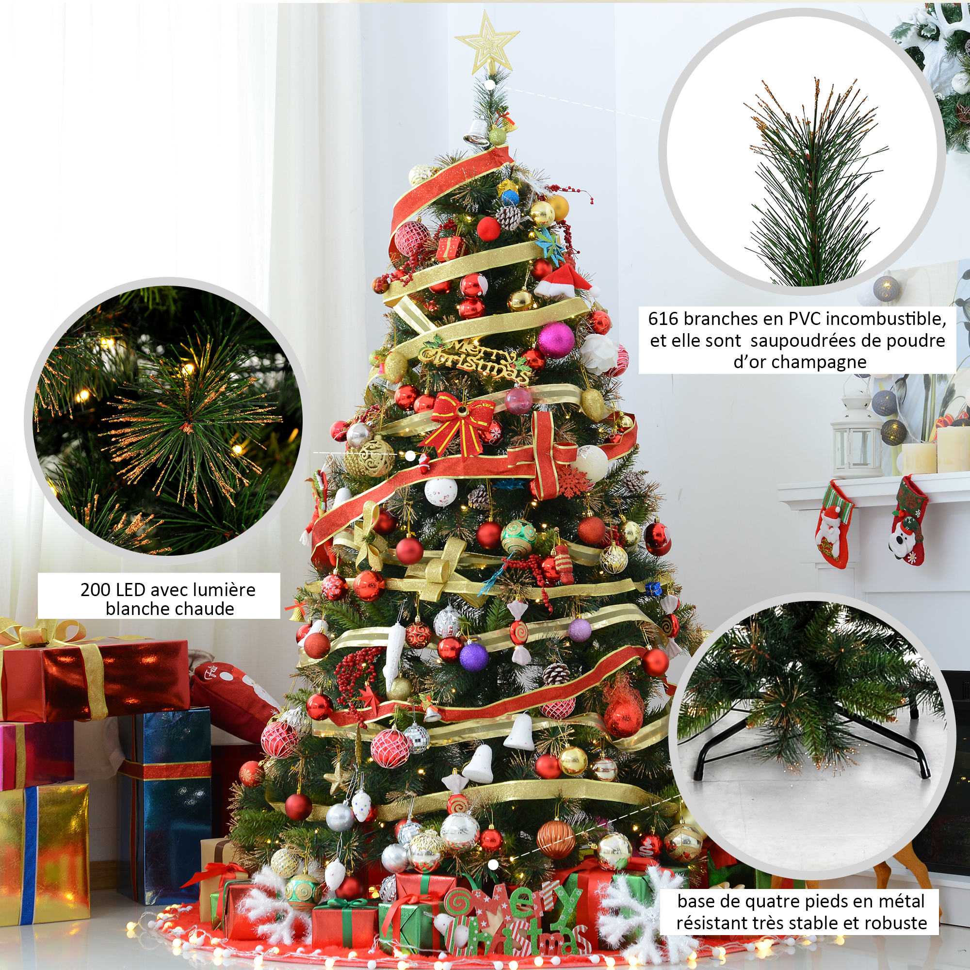 Sapin de Noël artificiel lumineux 200 LED blanc chaud diam. 112 x 180H cm 616 branches épines imitation N