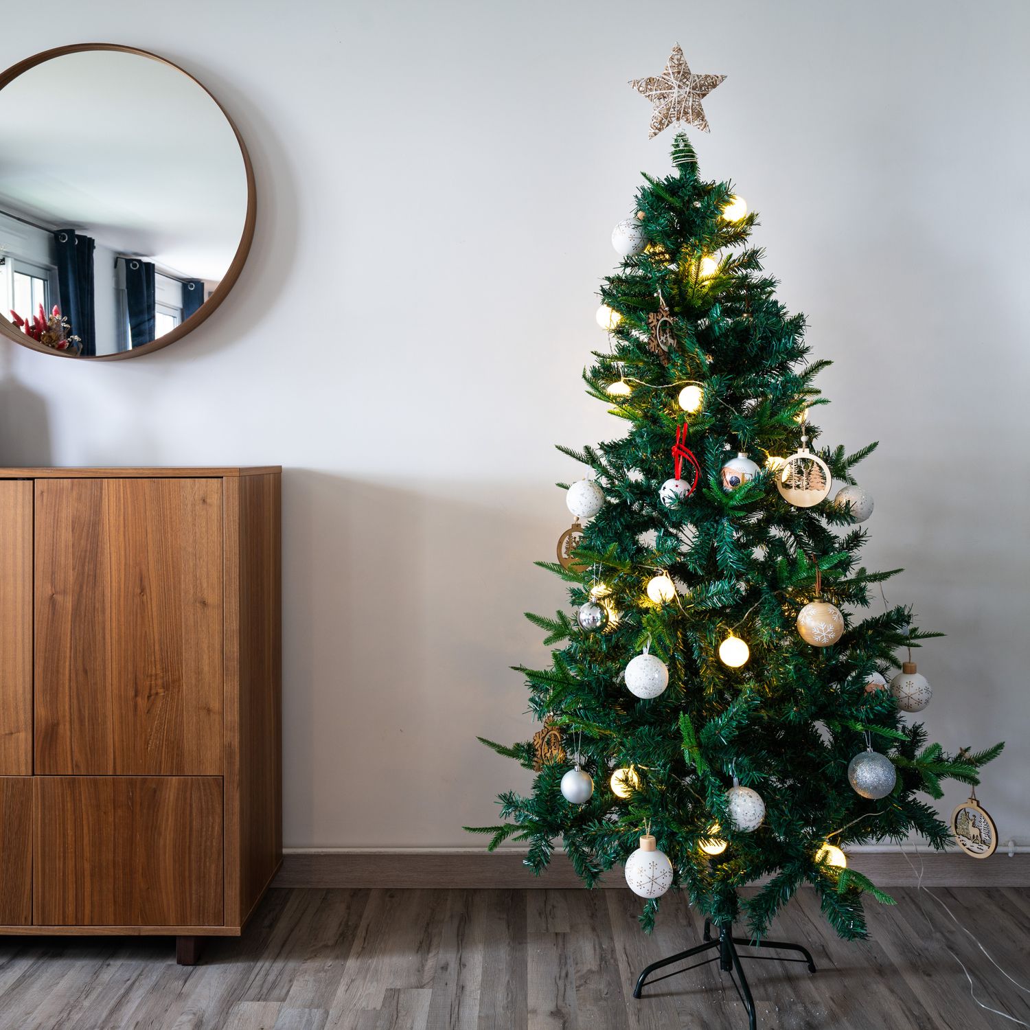 - Branches du sapin de Noël en PVC et polyéthylène haut de gamme, le rendant très réel.