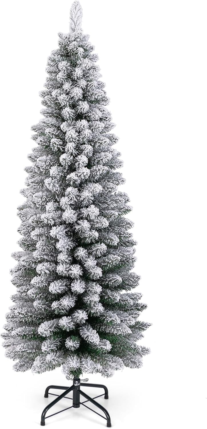 Sapin de noël enneigé 120cm arbre de noël artificielle étroit haut forme crayon 240 pointes de branches