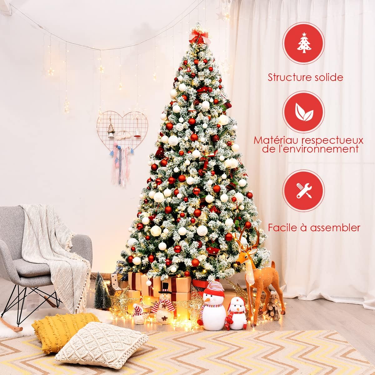 Sapin noel artificiel lumineux à charnière floquée avec 550 lumières led &1346 branches en pvc,230cm