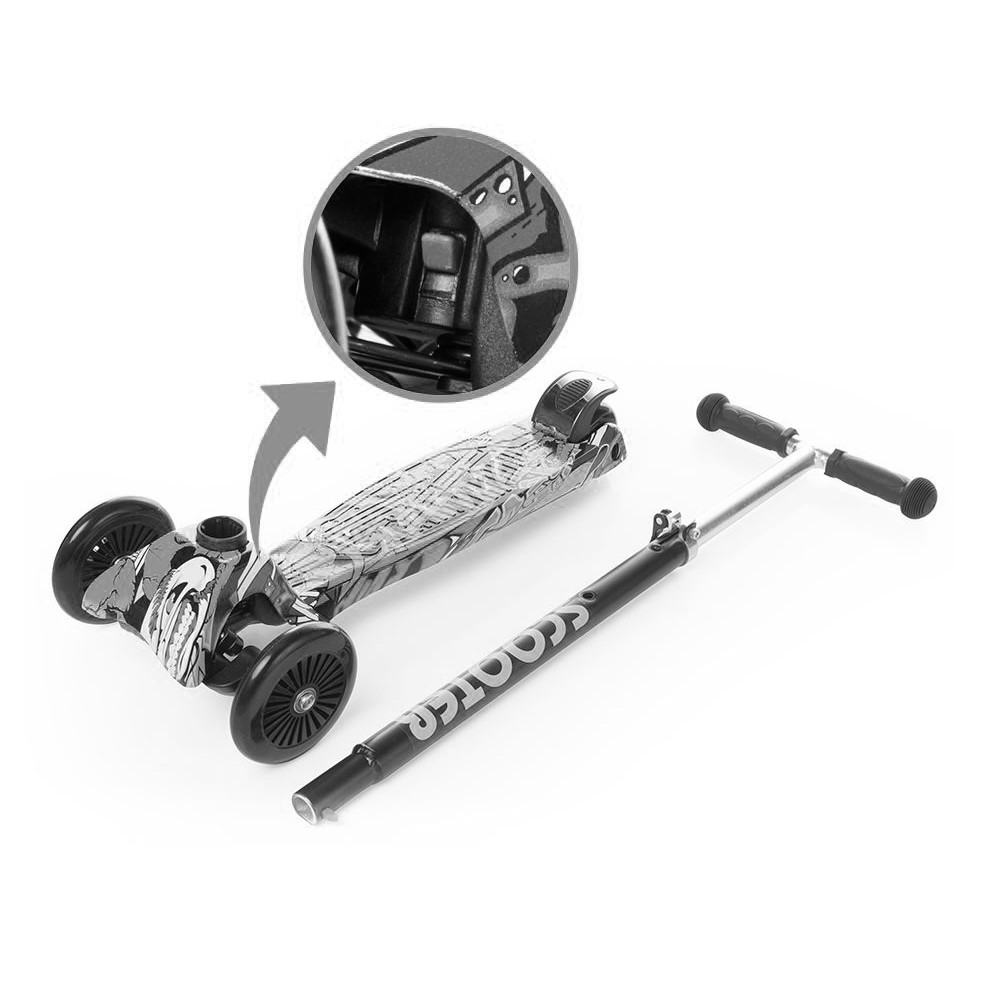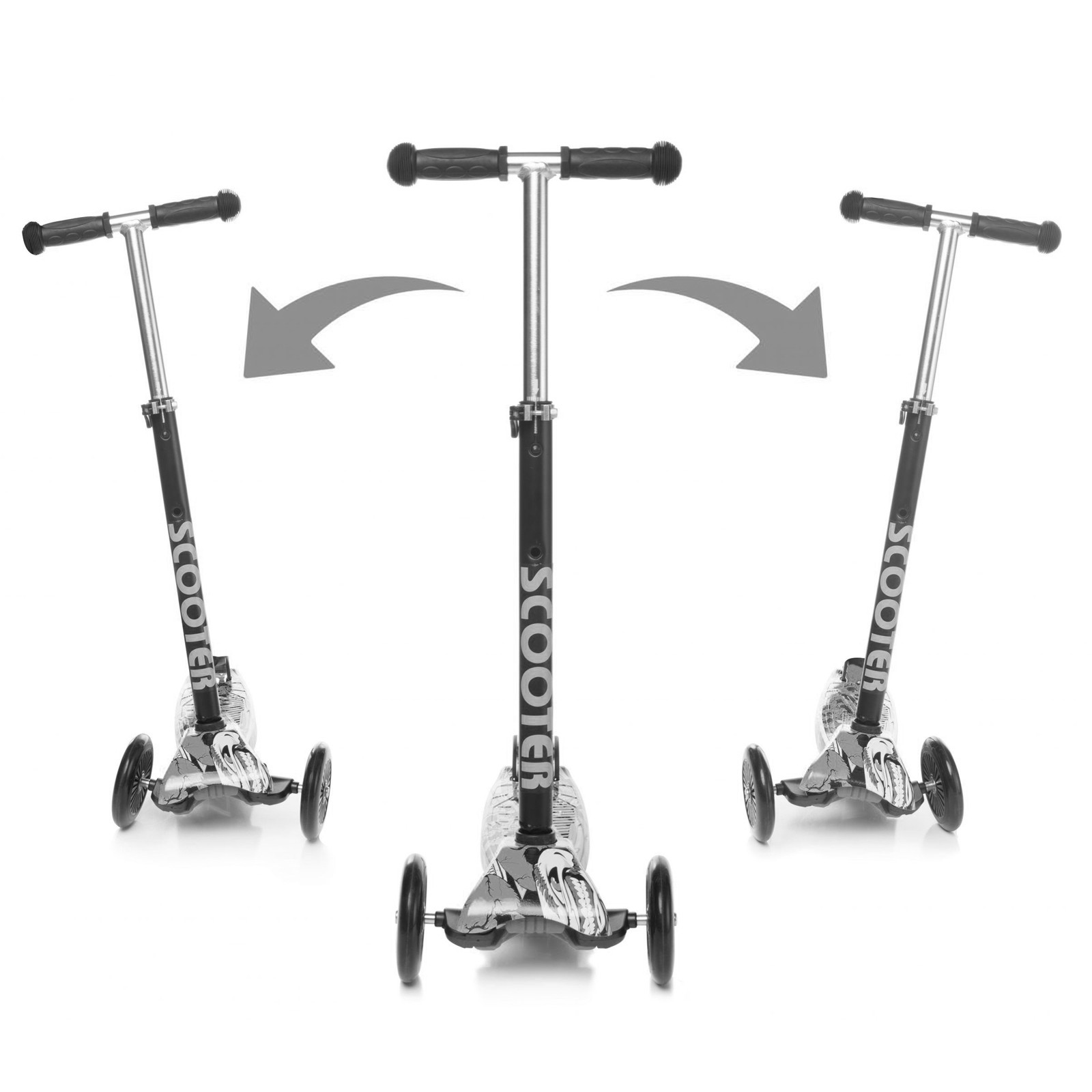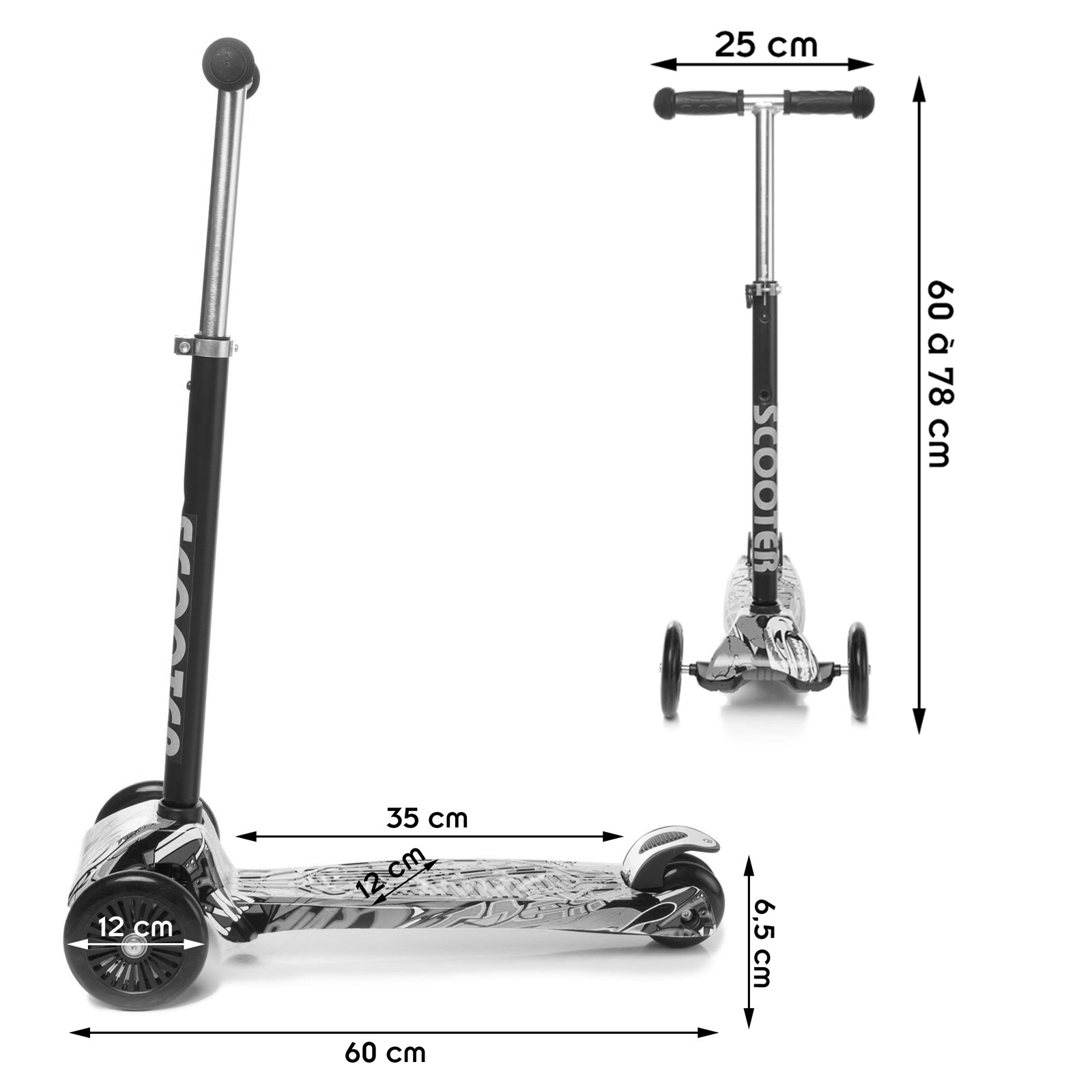 | Plus produit | Trottinette enfant évolutive design moderne avec 3 roues led lumineuses et 1 guidon réglable en hauteur de 60 à 78 cm. |