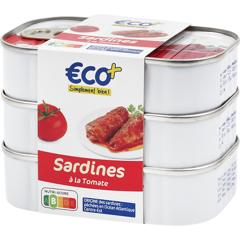 Ingrédients : Sardines, purée de tomates mi-réduite 15,9 %, eau, huile de tournesol, sel.