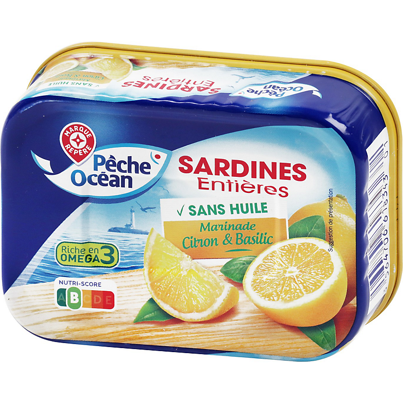 | Origine des principaux ingrédients | CITRON ORIGINE : ESPAGNE ET/OU MAROC*, BASILIC ORIGINE : ESPAGNE ET/OU MAROC*, SARDINE PECHEE EN : OCEAN ATLANTIQUE CENTRE-EST * SELON LES APPROVISIONNEMENTS ET/OU LES CARACTÉRISTIQUES GUSTATIVES RECHERCHÉES |