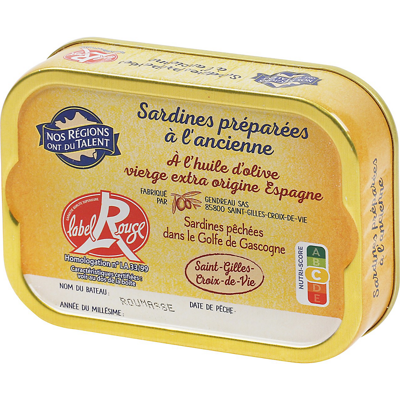 | Origine des principaux ingrédients | SARDINE PECHEE : DANS LE GOLFE DE GASCOGNE, HUILE OLIVE VIERGE EXTRA ORIGINE : ESPAGNE |