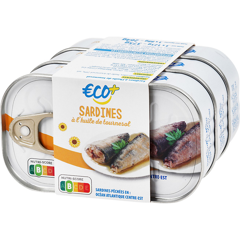 sardines huile tournesol 3 x 1/4 - 375 g - ECO +