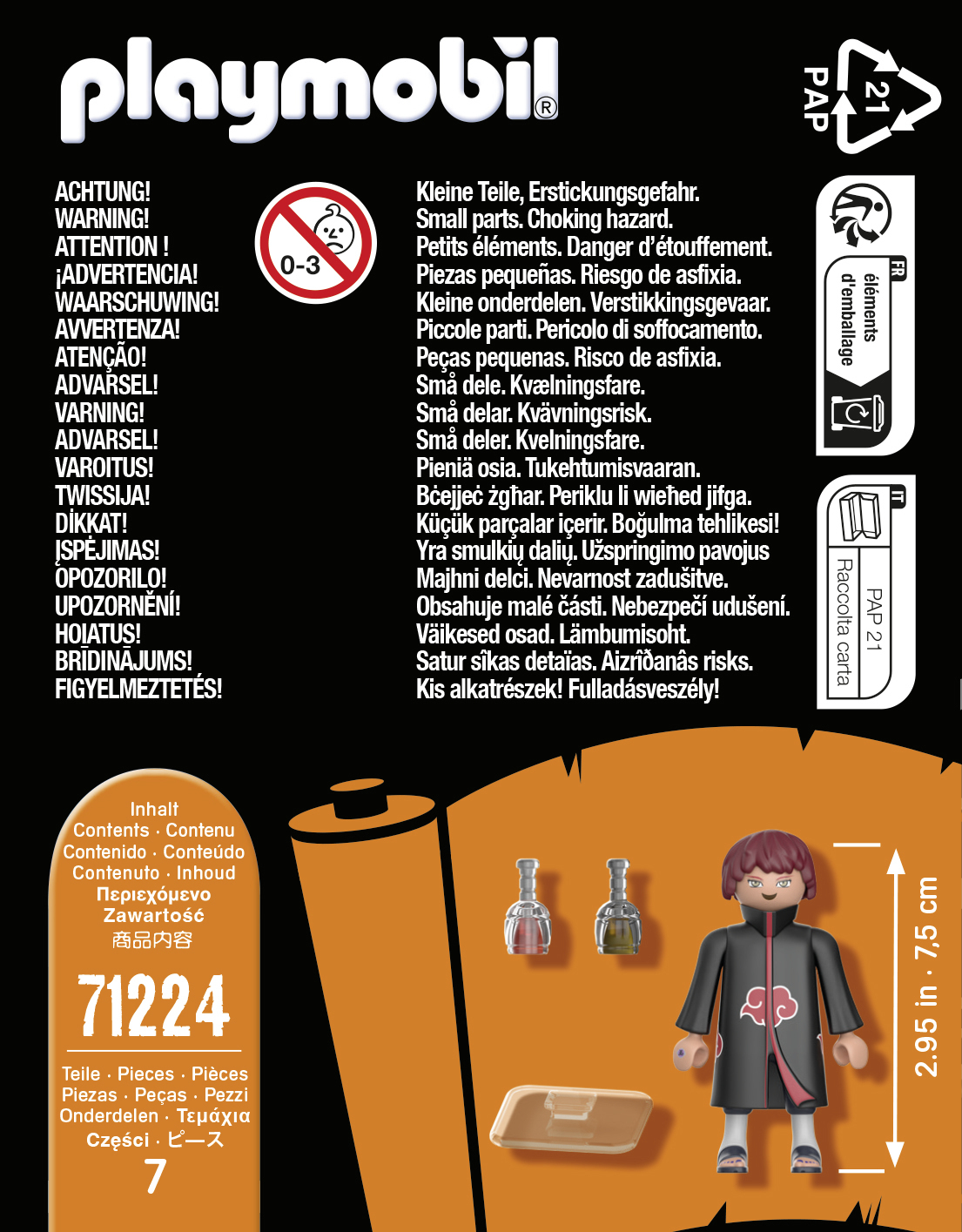 L'univers PLAYMOBIL Naruto continue de s'étendre ! Tous les fans d'anime peuvent se réjouir des nouveaux personnages du monde passionnant de NARUTO. Grâce aux nombreux détails des figurines, les personnages conçus avec précision invitent à reconstituer des scènes légendaires et à inventer de nouvelles histoires. Ce set comprend le personnage NARUTO SHIPPUDEN, Sasori avec deux bouteilles. Une étiquette est incluse pour la main en tant qu'anneau de doigt. Le personnage est solidement fixé sur le socle pour une meilleure stabilité.