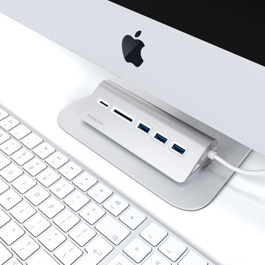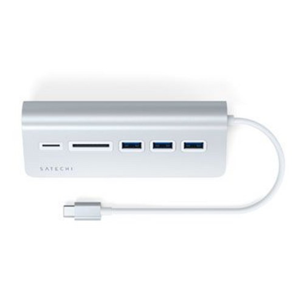 Satechi Hub Type-C vers USB 3.0 5Gbps avec Lecteurs de Carte SD/Micro Argent