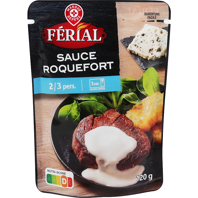 Ingrédients : Eau, crème 30,5 %, roquefort 14,1 %, lait demi-écrémé, huile de tournesol, amidon modifié de tapioca, sel, épaississant : gomme xanthane, poivre blanc.