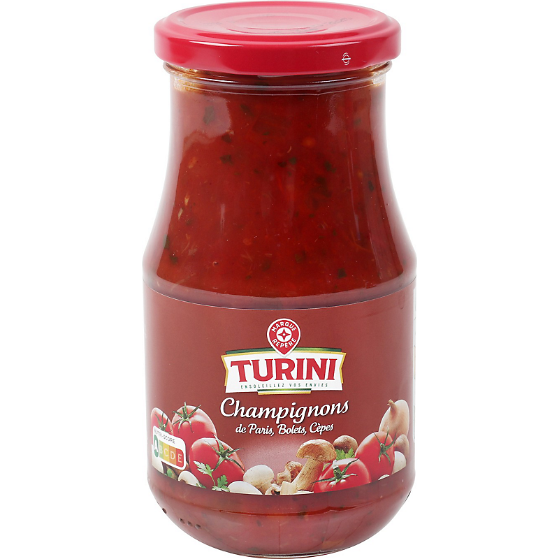 Sauce aux tomates, champignons (10 %) et légumes (9,4 %). TURINI