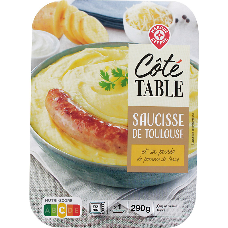 Purée de pommes de terre et saucisse de Toulouse. COTE TABLE
