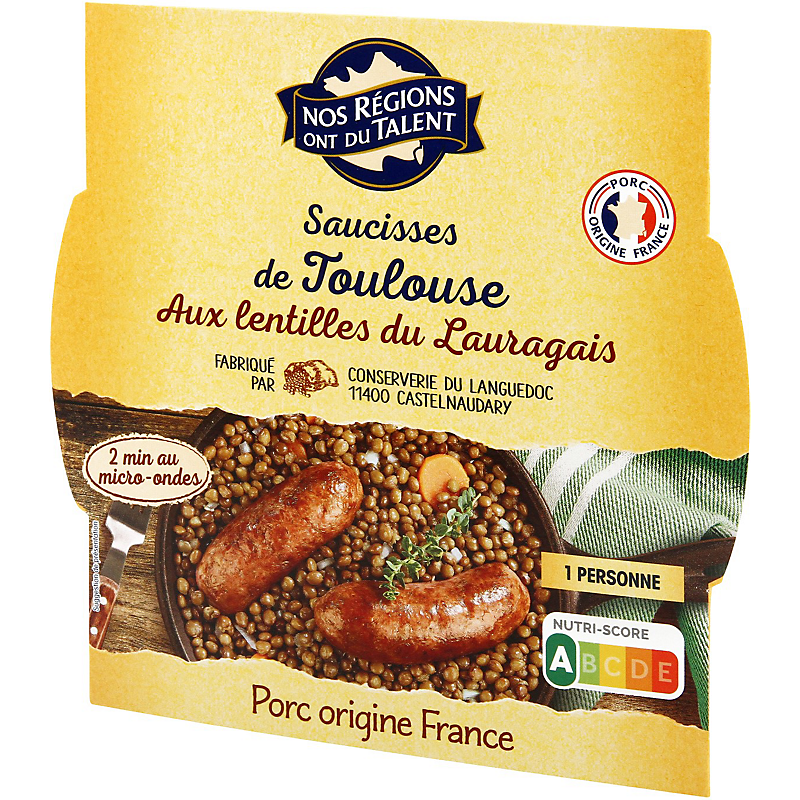 Saucisses de Toulouse aux lentilles NOS REGIONS ONT DU TALENT