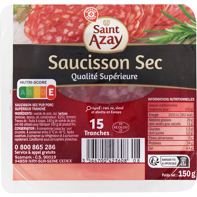 Saucisson sec pur porc supérieur tranché SAINT-AZAY