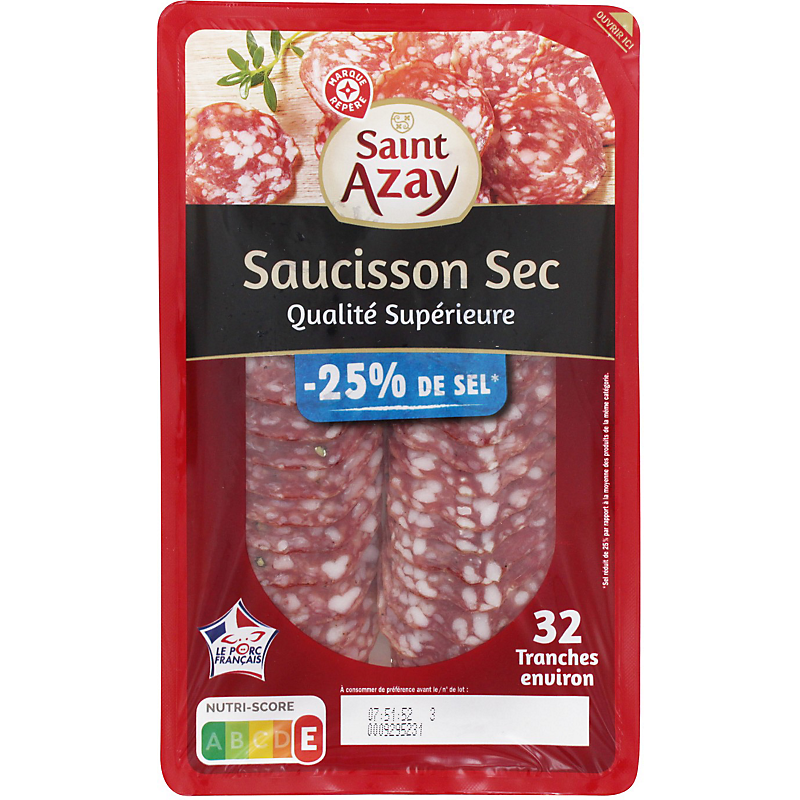 Saucisson taux de sél réduit 32 tranches - 100 g - SAINT-AZAY