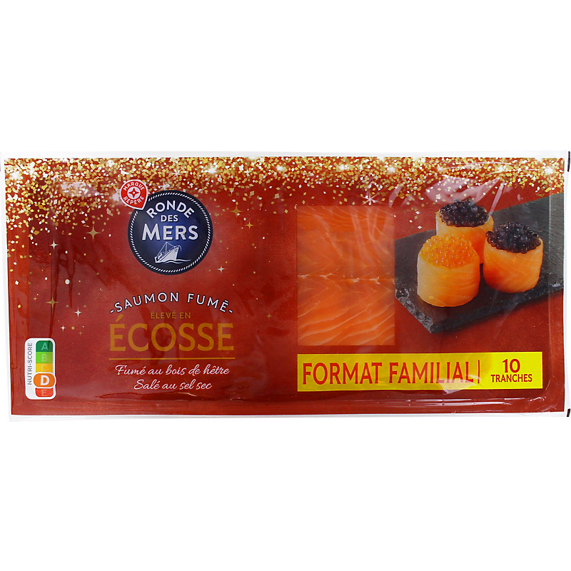 Saumon atlantique (Salmo salar) élevé en Ecosse (Royaume-Uni), fumé RONDE DES MERS