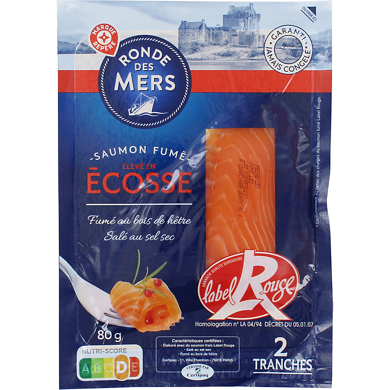 Saumon atlantique (Salmo salar) élevé en Ecosse (Royaume-Uni), fumé RONDE DES MERS
