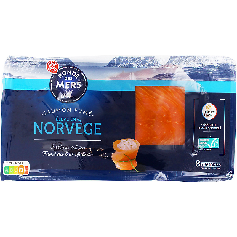 Saumon atlantique (Salmo salar) élevé en Norvège, fumé RONDE DES MERS