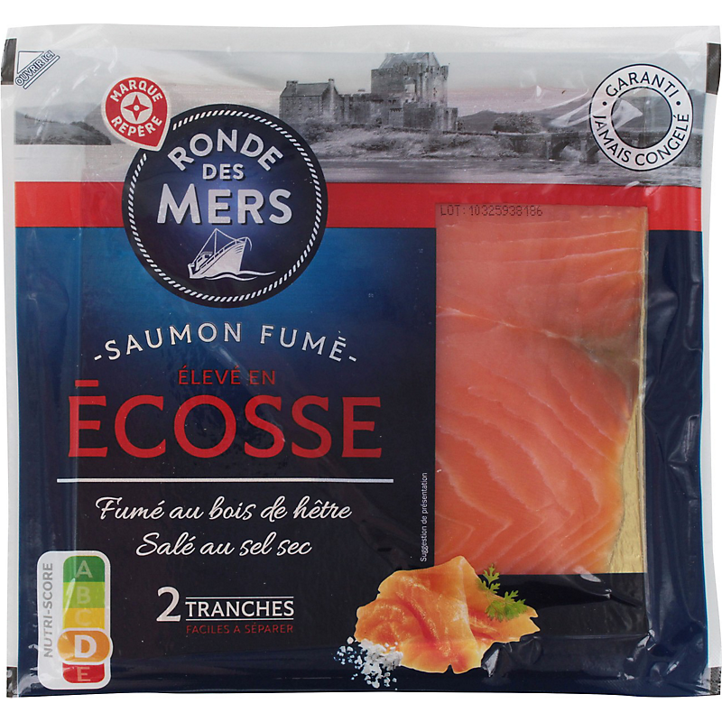 SAUMON ATLANTIQUE (SALMO SALAR) ÉLEVÉ AU ROYAUME-UNI (ÉCOSSE), FUMÉ RONDE DES MERS