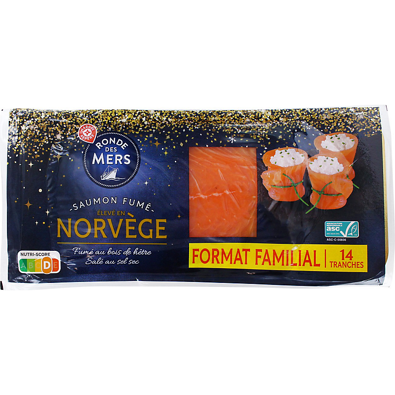 Saumon atlantique (Salmo salar) élevé en Norvège, fumé RONDE DES MERS