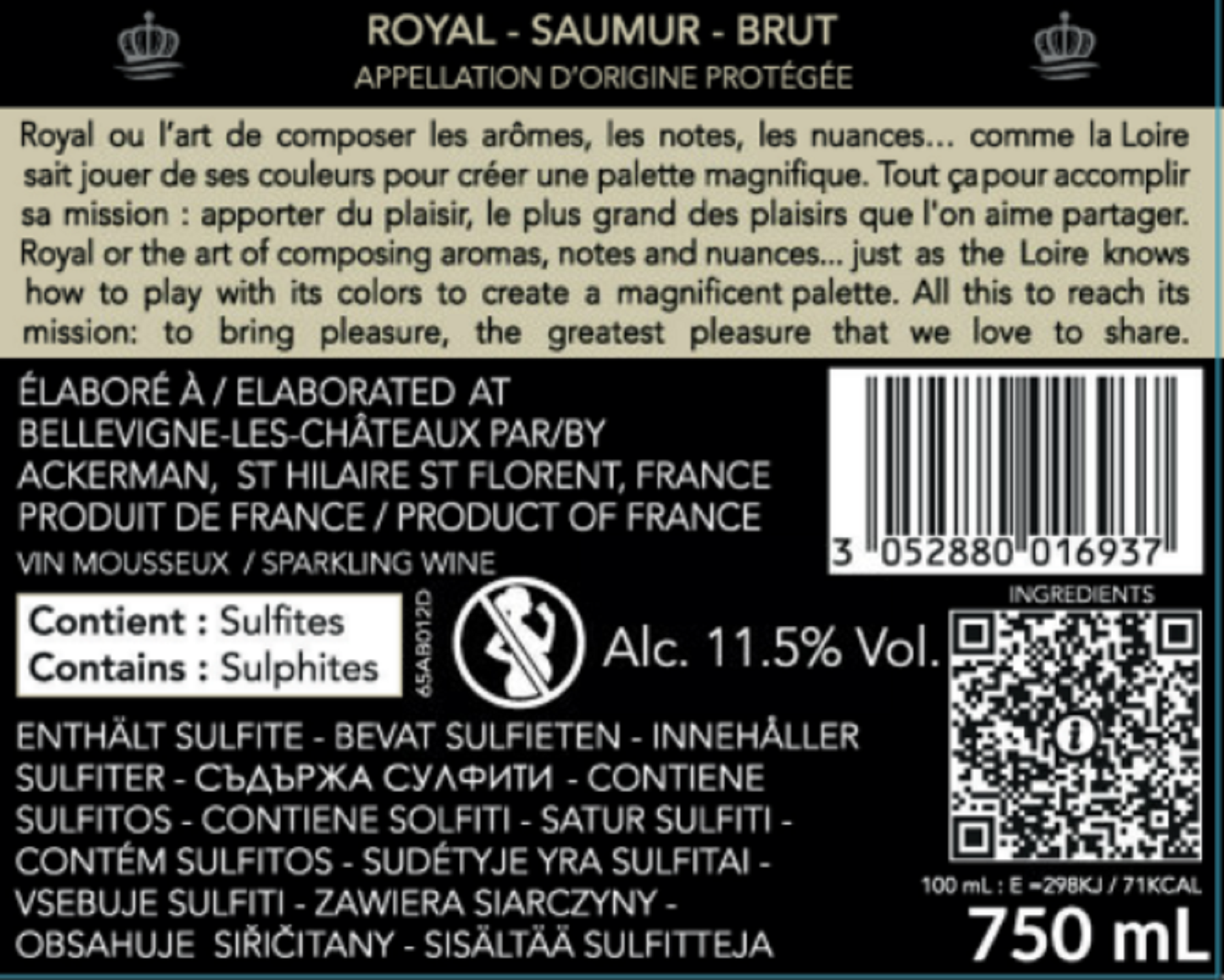 | Libellé | Saumur AOP Ackerman Royal - Brut, 2017 - 75 cl |