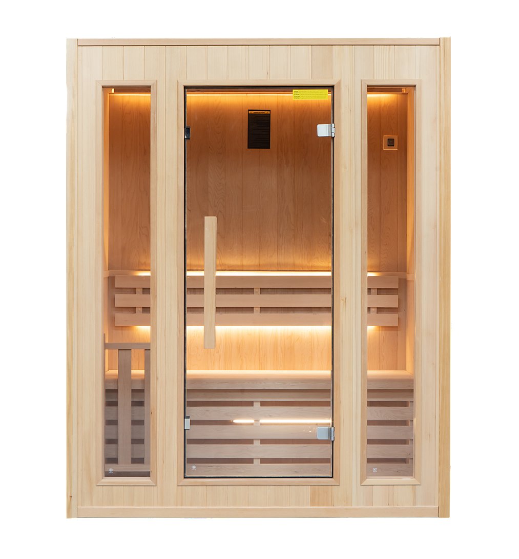 Sauna Vapeur ZEN - 3 places Pack complet 3.5kW Sauna Technologie vapeur Poêle et pierres inclus Banc