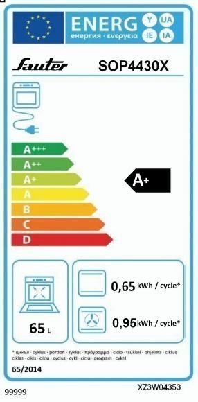 | Libellé | Sauter SOP4430X four 65 L 3385 W Acier inoxydable |