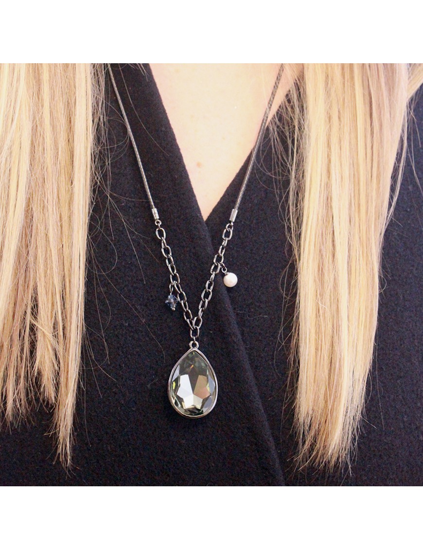 Composition : Laiton de haute qualité Finition : Plaqué Or 18k Type de Pierre : Cristal Autrichien de très haute qualité Nombre de pierre (pces) : 1 Couleur de la pierre : Gris Anthracite Longueur de la chaine : 700 + 50