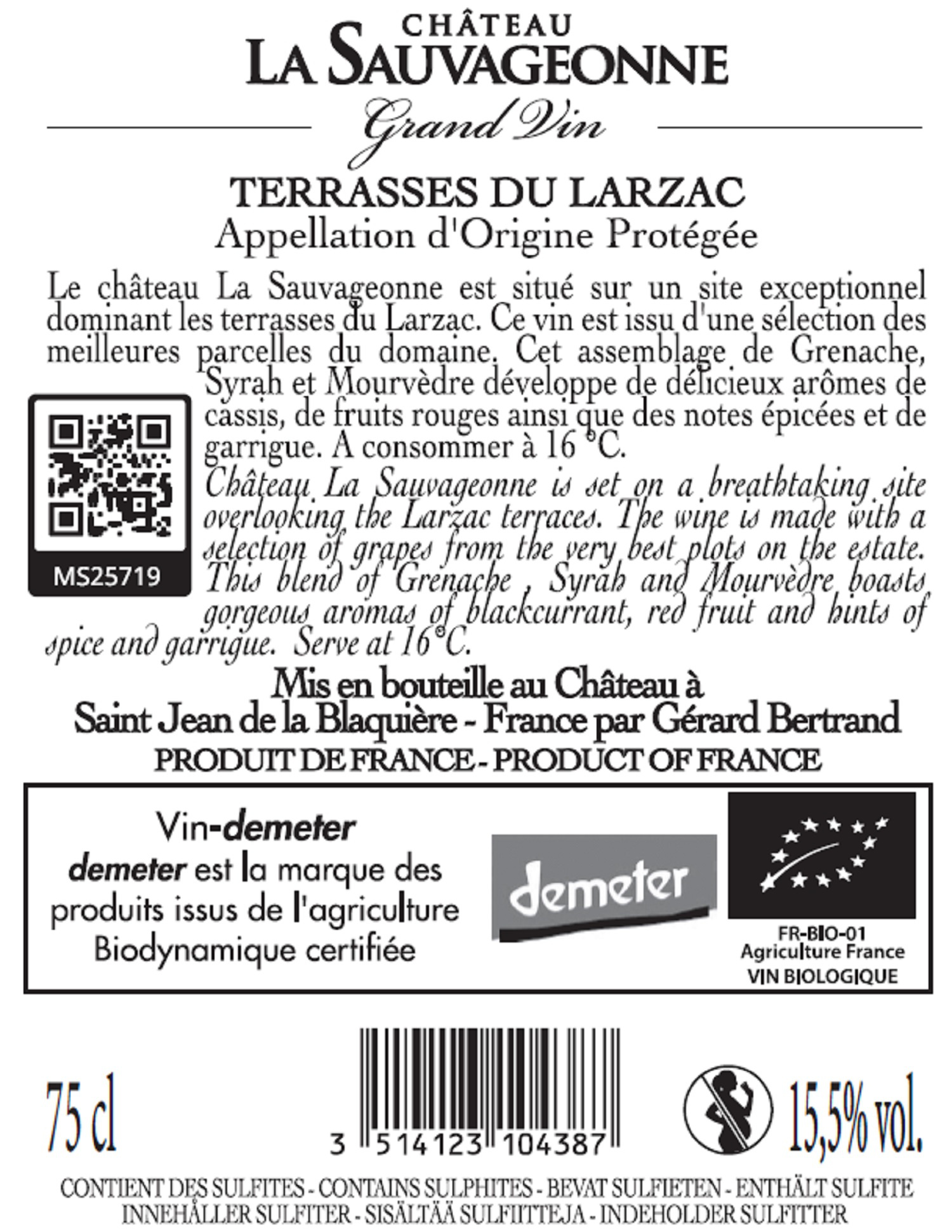| Libellé | Sauvageonne BIO, 2021 - Terrasses du Larzac AOP - Rouge - 75 cl |