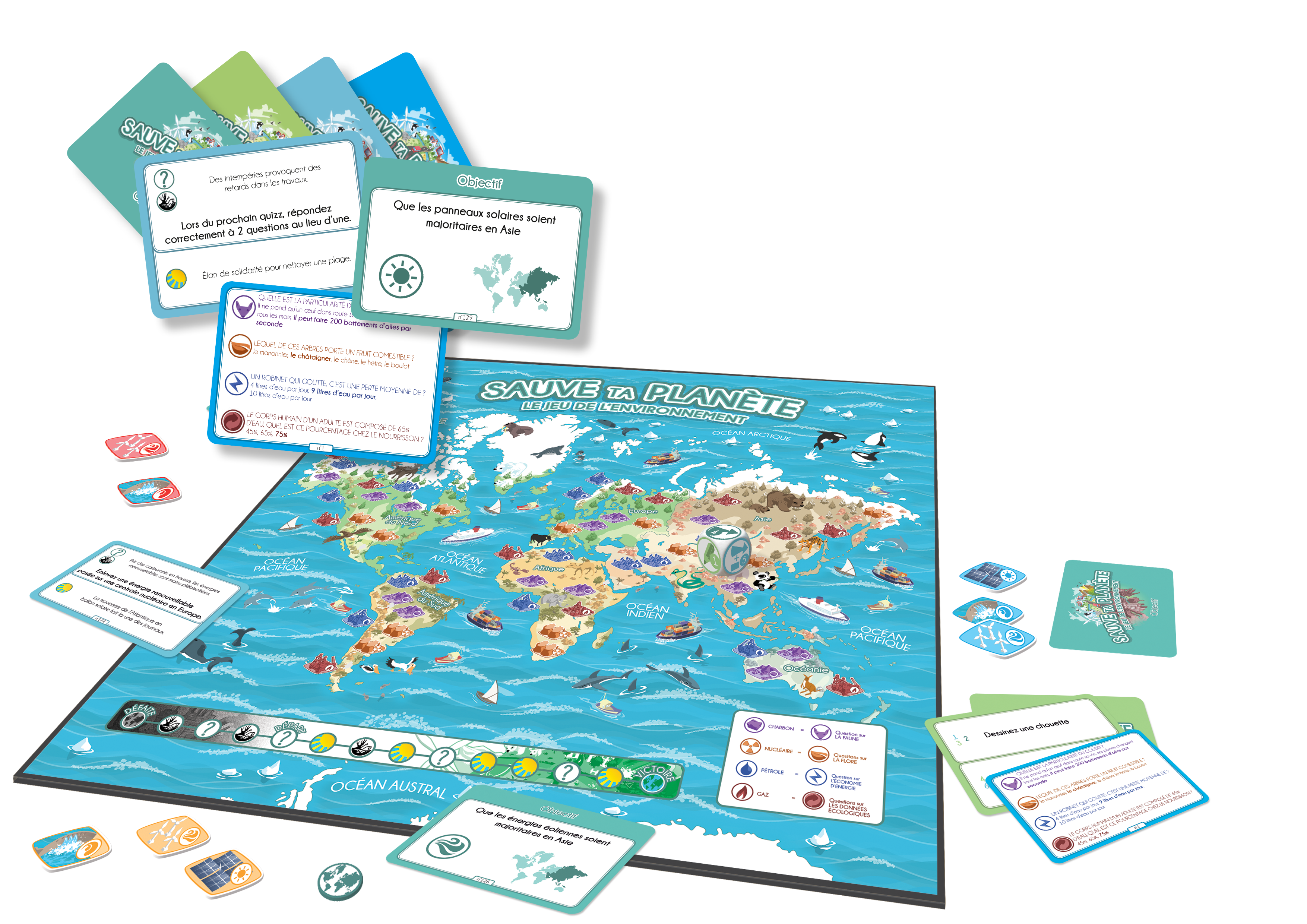Un jeu participatif pour toute la famille ! Votre mission : sauver la planète en remplaçant les énergies polluantes par des énergies renouvelables sur la carte du monde. Répondez à des questions sur le thème de l’environnement, la nature ou l’écologie pour modifier l’avenir de l’humanité et réveiller les consciences ! Mais attention aux événements qui peuvent modifier la partie et faire avancer vos adversaires vers la victoire !