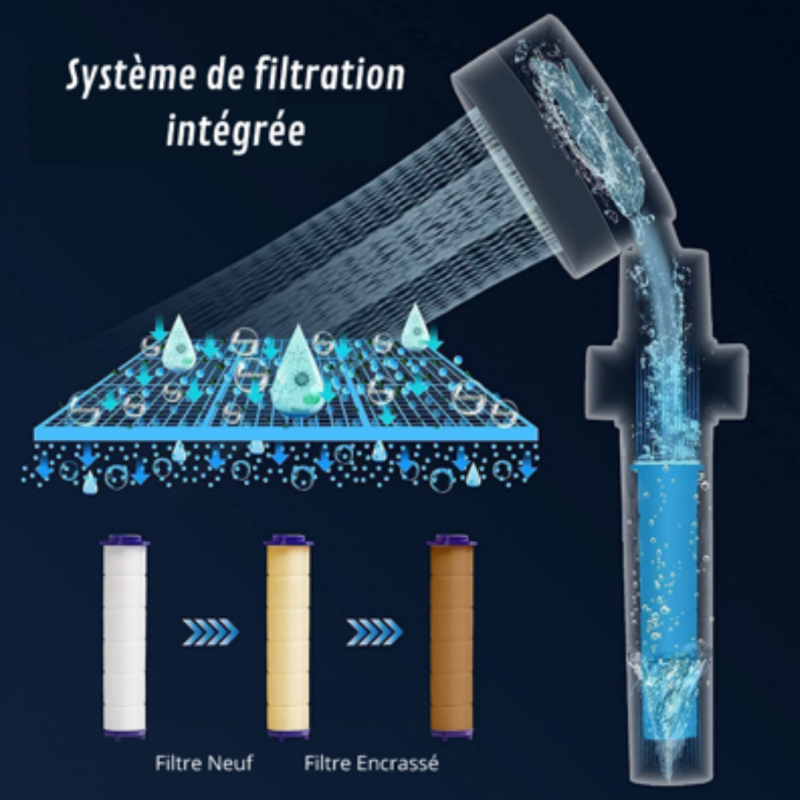 - Une protection efficace : Le filtre permet de stopper certaines particules indésirables. Idéale pour le bain des enfants et des animaux domestiques.
