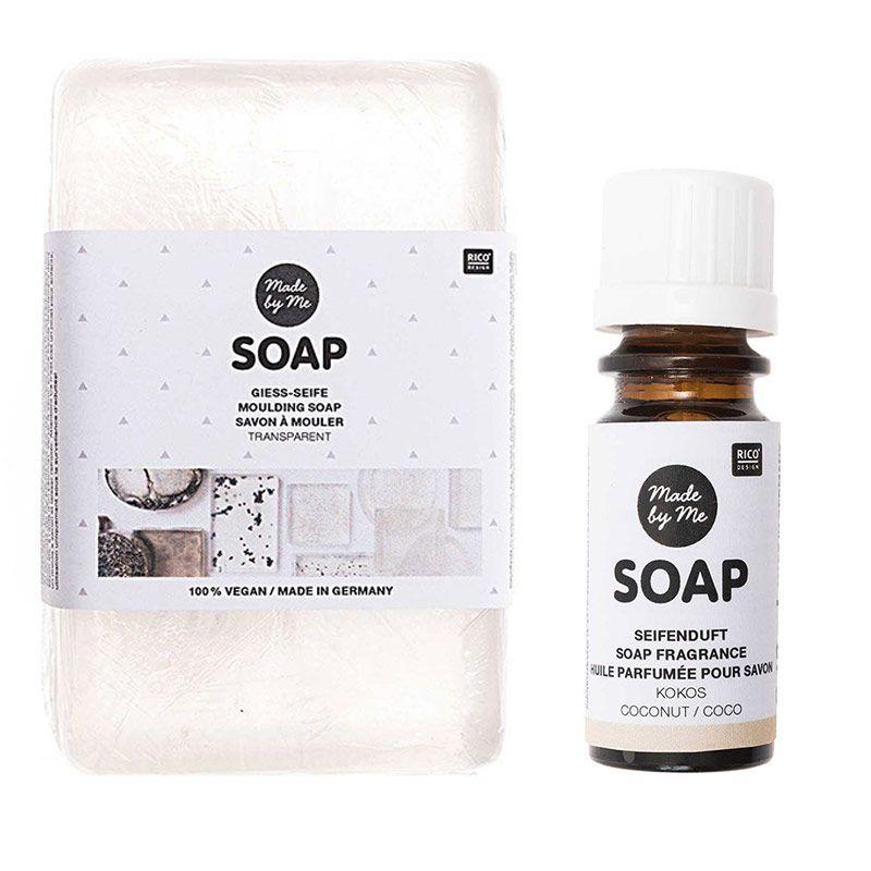 Savon à mouler transparent 100% vegan 250 g + Huile parfumée noix de coco