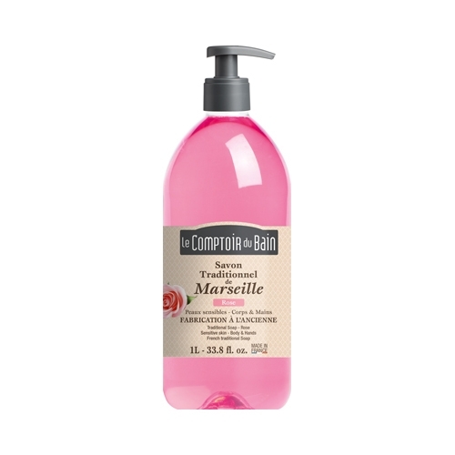 Le Comptoir du Bain Savon Traditionnel de Marseille Rose 1 L à la texture plaisante nettoie efficacement et en douceur, laissant un parfum floral et raffiné sur la peau. Idéal pour les peaux sensibles, il convient à un usage quotidien et fréquent. En effet, la base de ce savon est issue de la saponification d'huiles végétales d'origine naturelle. Elle ne contient ni conservateur, ni graisse animale, ni sulfate.