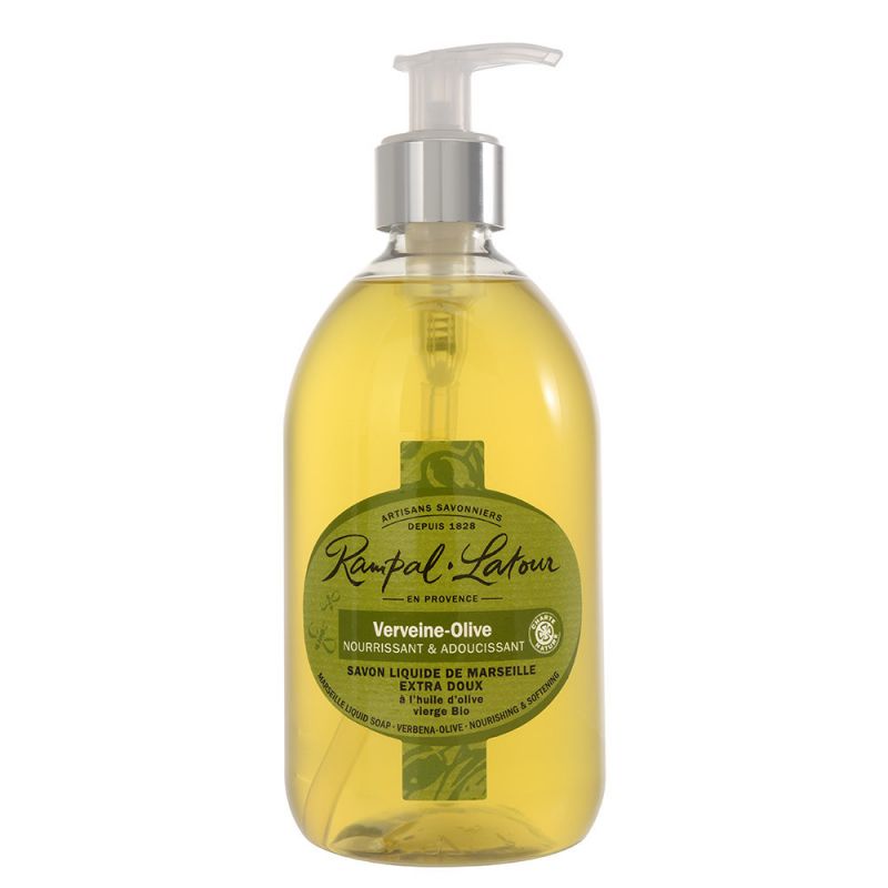 Le savon est un produit indispensable à l'hygiène quotidienne. Pour le rendre plus pratique d'utilisation, les maîtres savonniers de Rampal Latour au savoir-faire de 190 ans ont décliné le savon traditionnel sous forme liquide. Conçus à base d'huile d'amande douce, nos savons liquides sont extra-doux et conviennent à tous les types de peaux. Ils offrent ainsi une toilette agréable et en toute confiance au quotidien.Aux vertus nourrissantesNotre savon liquide est à base d'huile d'amande douce, reconnue pour ses vertus nourrissantes. Un savon de confiance extra doux pour la peau A base d'huiles 100 % végétales saponifiées, il est sans parabens, sans EDTA, sans BHT, sans PEG ni substances issues de la pétrochimie.Efficace et agréablement parfuméIl lave efficacement le corps et les mains et laisse une senteur agréable sur votre peau.Son parfum est naturel, frais et tonifiant : une verveine finement citronnée.Des avantages écologiques Sa bouteille est recyclable. De plus, c'est un savon qui mousse peu, qui se rince parfaitement bien et qui nécessite donc peu d'eau de rinçage. Pratique et économiqueEn 500 ml, il est pratique grâce à sa pompe mais aussi rechargeable avec le flacon en 1 litre.Notre Charte Nature : A base d'huiles 100% végétales saponifiées Sans parabens Sans EDTA Sans BHT Sans PEG ni substances issues de la pétrochimie Emballage recyclableIngrédients INCI : Aqua(Water) , Potassium Cocoate , Glycerin , Potassium Olivate , Polyglycerol-3 Caprylate,Hydroxyethylcellulose , Parfum/Fragrance , Caprylyl/capryl Glucoside , Tetrasodium Glutamate Diacetate , Citral , Cocos Nucifera Oil , Potassium Benzoate , Potassium Sorbate , Limonene , Olea Europaea Fruit Oil , Tocopherol
