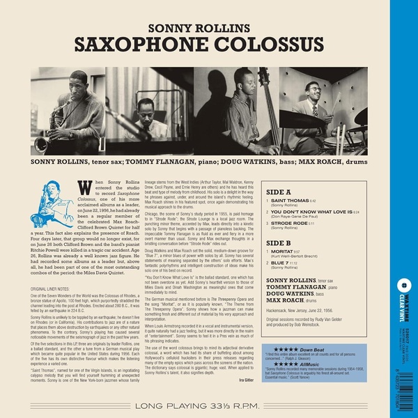 À 26 ans, Sonny Rollins enregistre Saxophone Colossus, l'un de ses albums majeurs, accompagné notamment de Max Roach. Membre du quintette de Clifford Brown, il est déjà reconnu comme l'une des grandes figures du jazz. Édition limitée - Album complet.