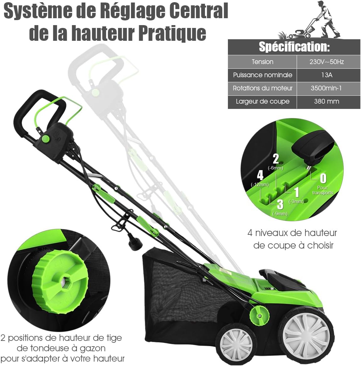 | Libellé | Scarificateur de pelouse électrique de 13a, double interrupteur de sécurité, sac de ramassage de 45 l |