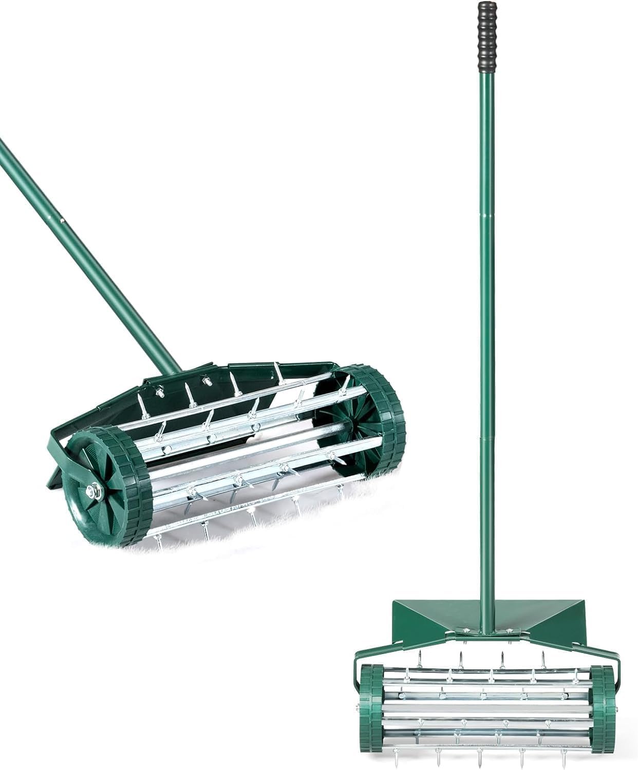 Scarificateur manuel à pointes rotatives, Aérateur à gazon roulant de 46 cm, écran de protection (Vert)