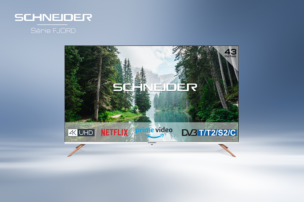 | Libellé | SCHNEIDER CONSUMER SC43S1FJORD TV 109,2 cm (43") 4K Ultra HD Smart TV Wifi Gris, Blanc, Bois |
