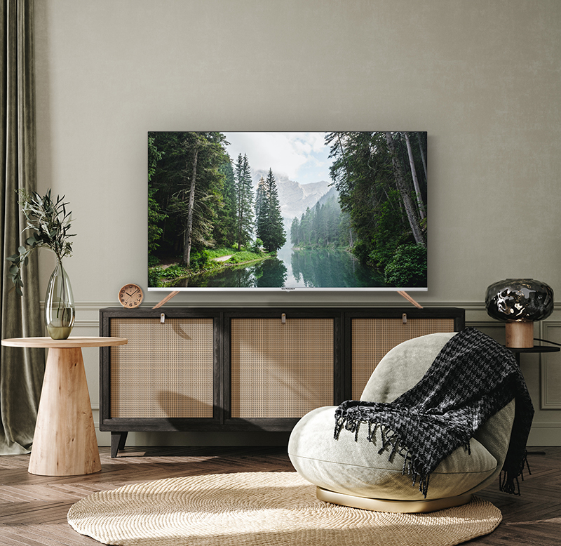 Les téléviseurs sont disponibles en 4 tailles : 32, 43, 50 et 55 pouces. De la chambre au salon, du bureau à la cuisine, ces téléviseurs sont des objets de décoration d’exception qui affirmeront votre style.