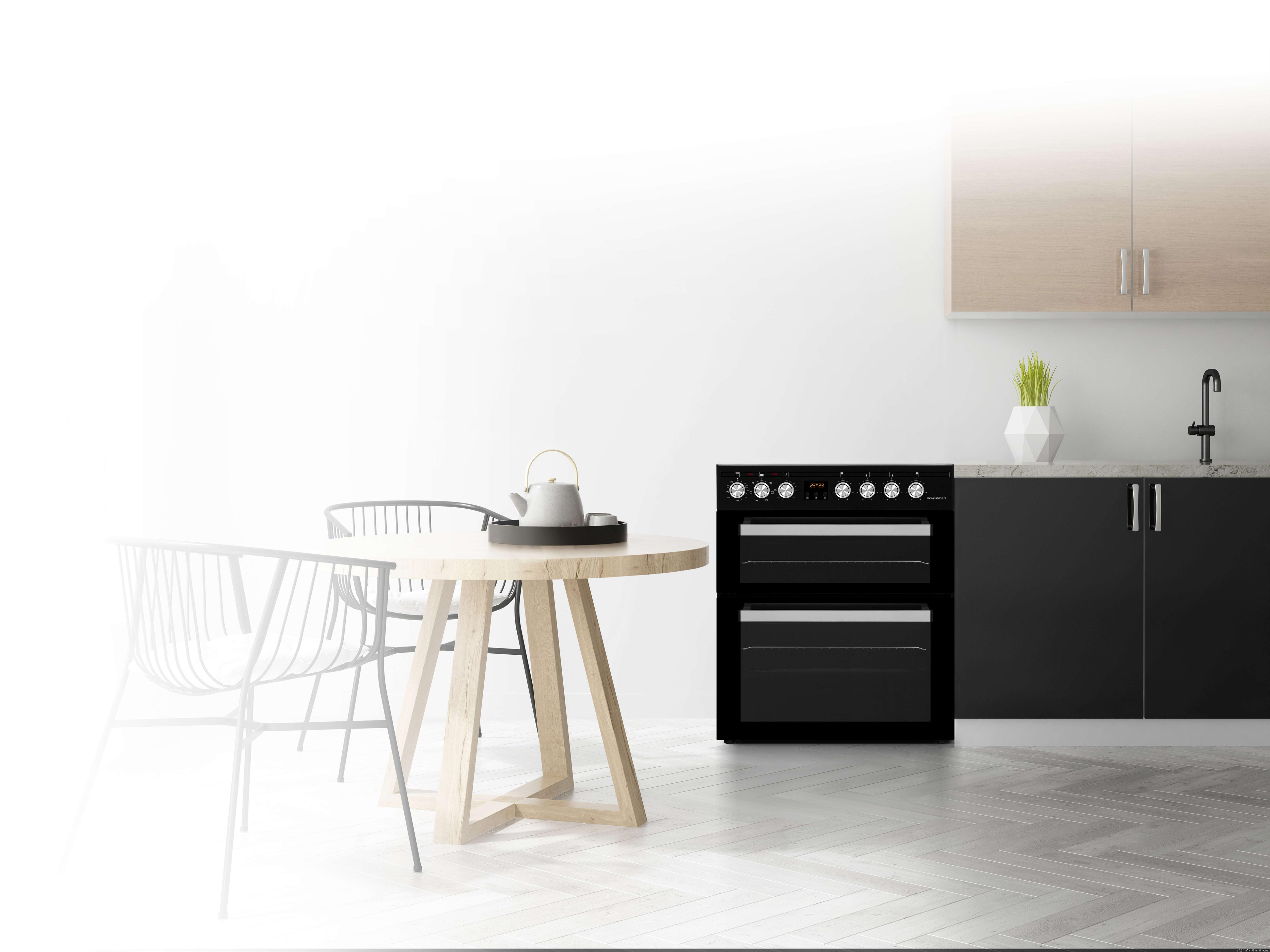 Schneider SCCV64DO-BM - Cuisinière double four 4 feux vitrocéramique Black mat.