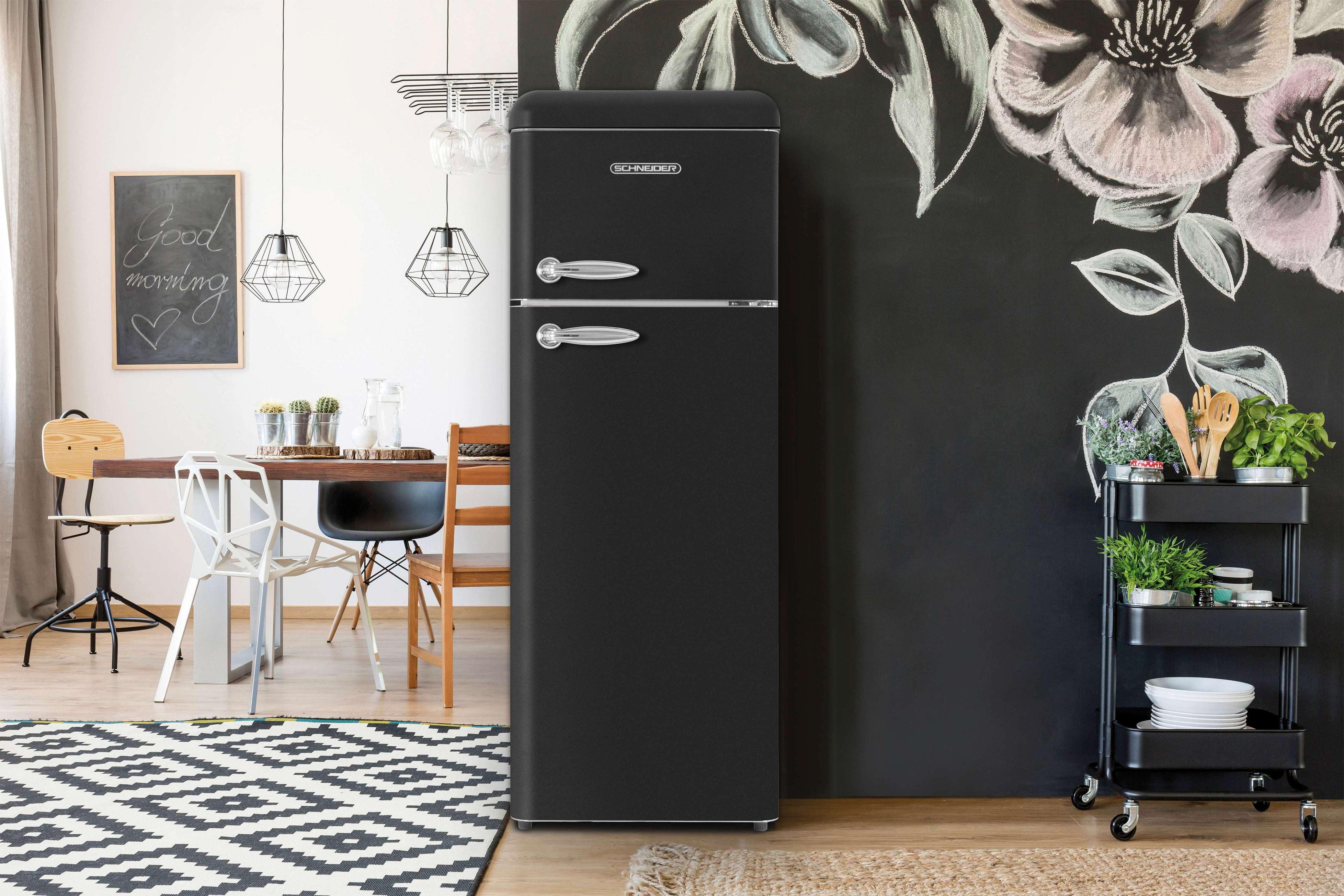 Schneider SCDD211V-BE - Réfrigérateur double porte 211L Vintage Noir.