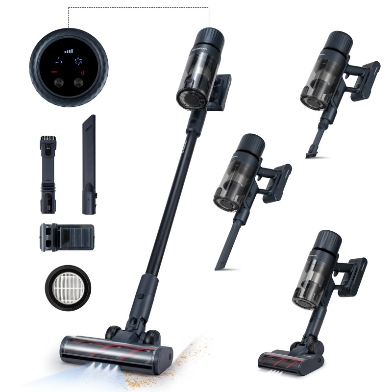 Grâce à sa batterie Li-ion 22,2 V – 2200 mAh amovible, profitez de 40 minutes en mode ECO (17 min en TURBO) pour des sessions complètes, avec un niveau sonore ≤ 78 dB pour plus de confort. La brosse motorisée avec LED, le support mural et les accessoires fournis simplifient l'entretien dans toute la maison.