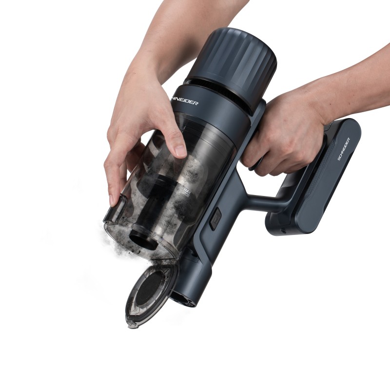 L'aspirateur balai sans fil Schneider SCH V20 combine puissance de 140 W, filtration HEPA lavable, et affichage numérique pour un nettoyage efficace au quotidien. Son moteur offre jusqu'à 12 KPa d'aspiration (25 ± 10 AW) et un bac de 650 ml, idéal pour sols durs, tapis et poils d'animaux.