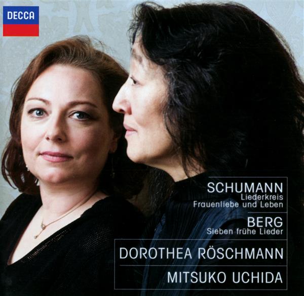 Deux grandes artistes au sommet de leur art, la soprano Dorothea Röschmann et la pianiste Mitsuko Uchida, interprètent les lieder de Schumann et Alban Berg. Pour l'écriture de ses lieder, Schumann s'était inspiré de Schubert avec l'agencement en cycles, comme L'Amour et la vie d'une femme (Frauenliebe und leben) qui mettent en musique huit épisodes de la vie d'une femme, ou Les Amours du poète, mais il attribue un nouveau rôle au piano. Il développe également le concept de recueils de lieder avec notamment les Liederkreis qui décrivent l'univers du poète Joseph Eichendorff. Le grand amour de Schumann pour Clara Wieck est au coeur des Liederkreis, qu'il décrit comme "sa musique la plus romantique". Les Sieben frühe Lieder (Sept lieder de jeunesse) ont été composés par Alban Berg entre 1905 et 1908 parmi une centaine d'autres lieder, alors qu'il étudiait avec Arnold Schönberg.