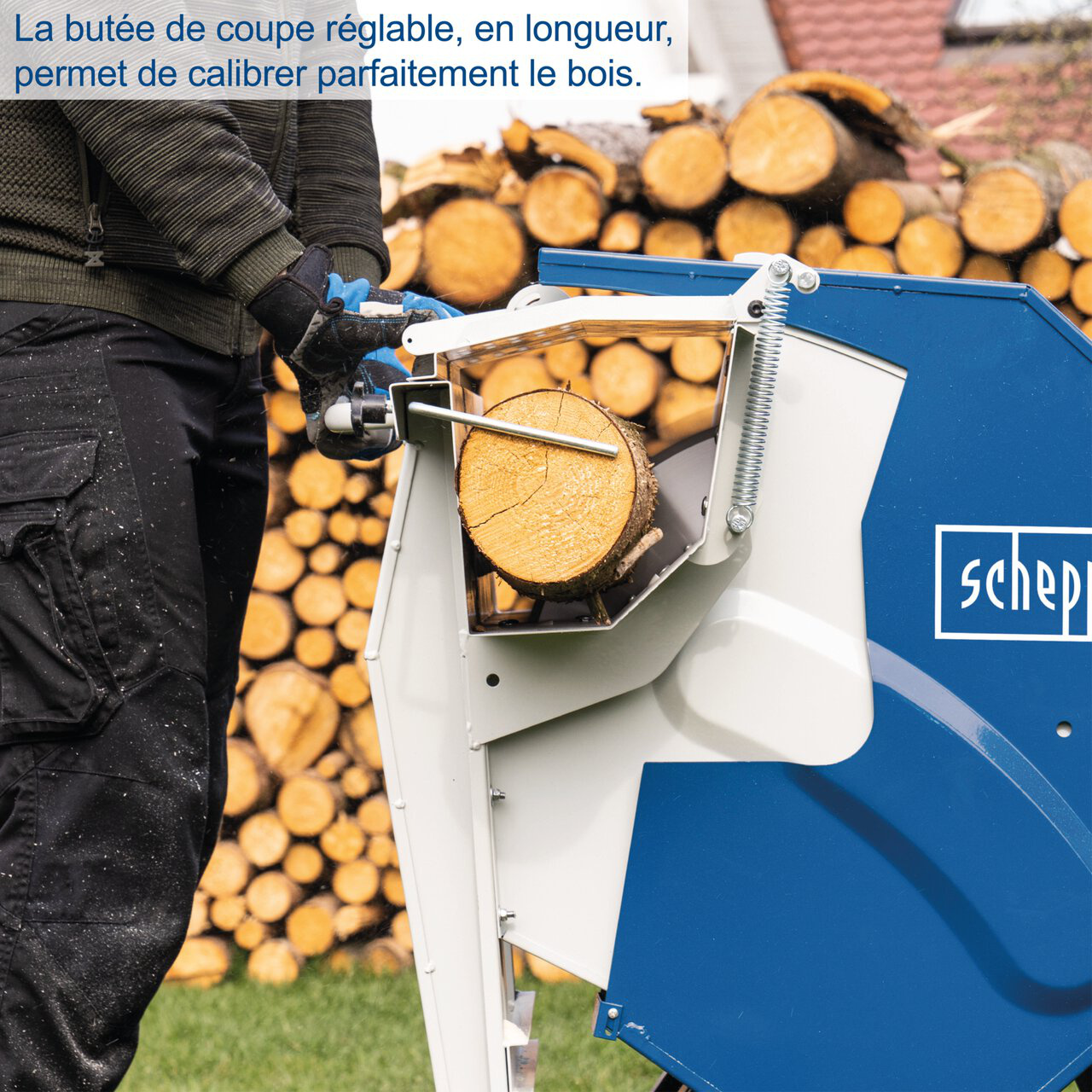SCIE À BÛCHES PIVOTANT TRONÇONNEUSE BASCULANT ÉLECTRIQUE 505MM SCHEPPACH HS510 La scie à bûches à chevalet Scheppach HS510 est très robuste, puissante et confortable à utiliser. De nombreuses caractéristiques contribuent à un maximum de sécurité pendant son utilisation qui réduit les contraintes et les efforts nécessaires pour scier le bois de chauffage. L’opérateur travaille en toute sécurité et à une hauteur ergonomique. Cette scie est compacte et extrêmement résistante. - Sa construction mécano-soudée contribue à sa grande longévité - Cette scie dispose d’une forte capacité de coupe - Elle est équipée d’un dispositif de mise à longueur - Sa lame carbure de 505 mm est optimale pour couper les branches et les troncs - Machine très stable, équipée d’un châssis en acier et d’un chevalet résistant à la déformation - Solide et durable - Pré-assemblée - Sécurité augmentée par le protecteur de lame et zone de coupe protégée Fiche technique: Lame Ø 505 mm Capacité de coupe maxi. Ø 170 mm Longueur de bûche maxi. 200 – 1350 mm Vitesse de coupe 2800 min-1 Moteur 230 V~ Puissance absorbée 2600 W Pour ce produit, nous recommandons l'utilisation de câbles d'alimentation d'une section d'au moins 2,5 mm afin d'éviter les pertes de courant électrique et d'assurer un bon fonctionnement.