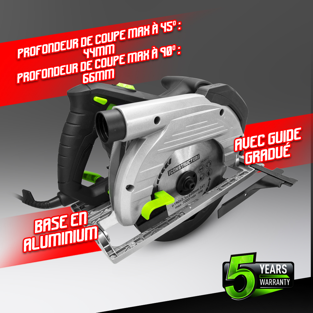 | Libellé | Scie circulaire 1350W - 190mm - Constructor |
